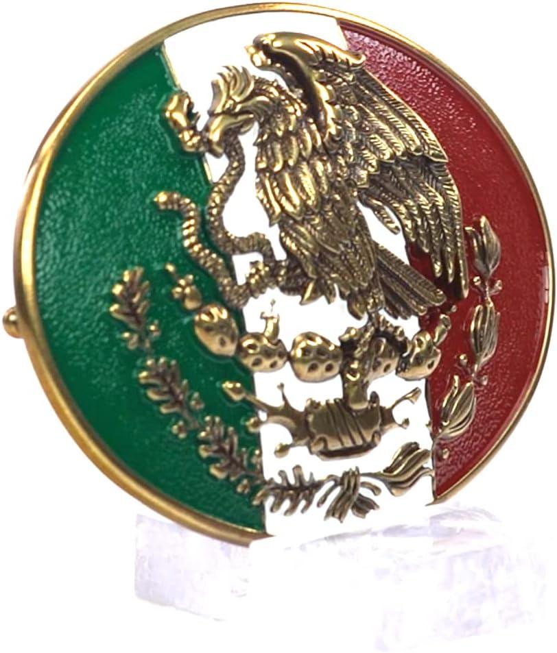 ARIAT Antique Gold Oval Buckle with Mexican Flag Colors and Gold Eagle Motif, Smooth Edge, 3-3/4″ x 2-7/8″