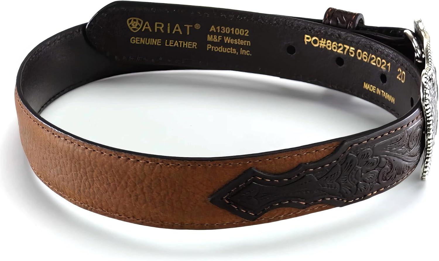 ARIAT Boy’s Rectangle Rope Edge Shield Buckle Embossed Belt (Little Kids/Big Kids)(Brown)