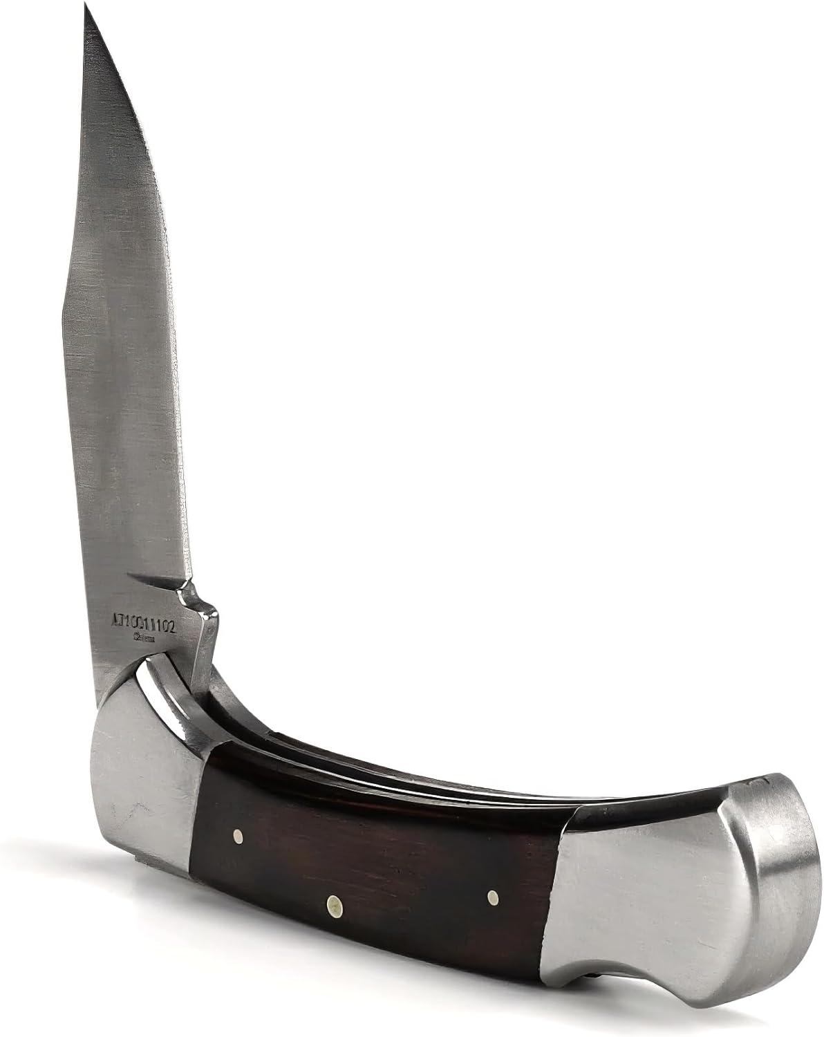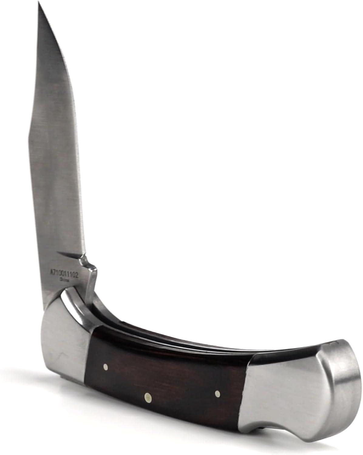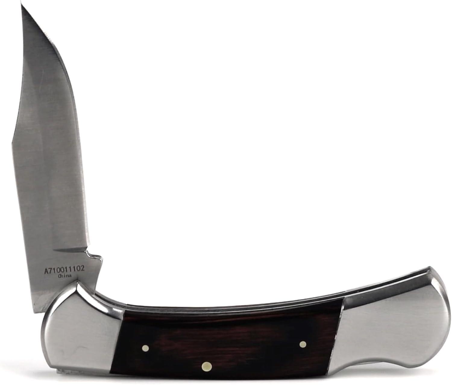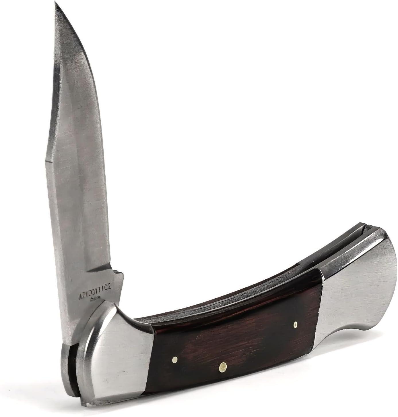 ARIAT Large Folding Knife – 3-3/8″ Smooth 3CR13 Steel Blade with Back Lock and Brown Wood Handle(Brown)