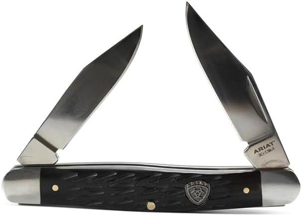 ARIAT Large Muskrat Folding Knife, Tan Wood Handle w/Shield – Two Blades(Black)