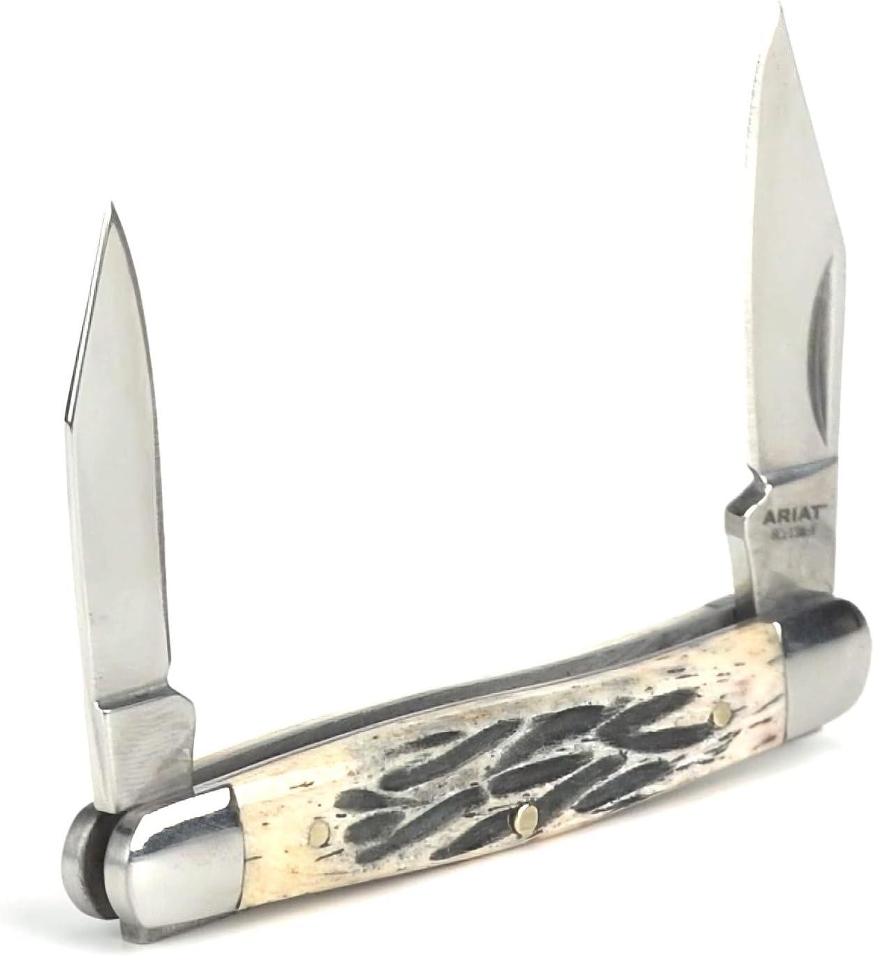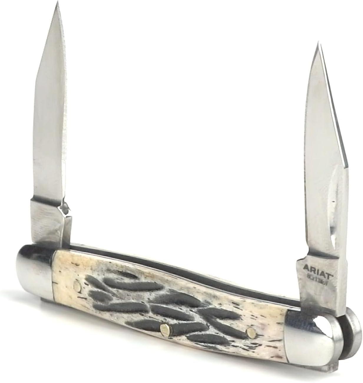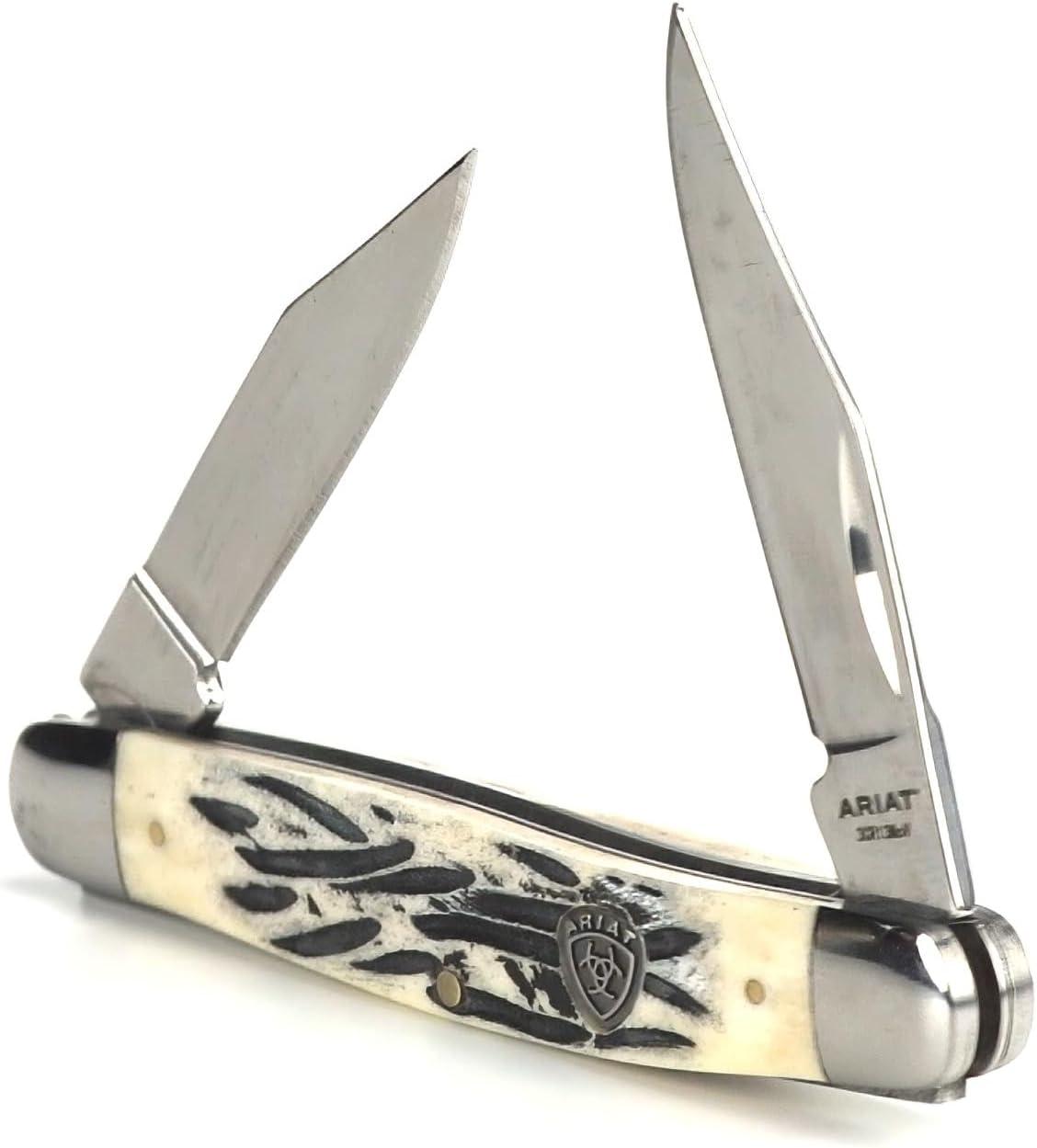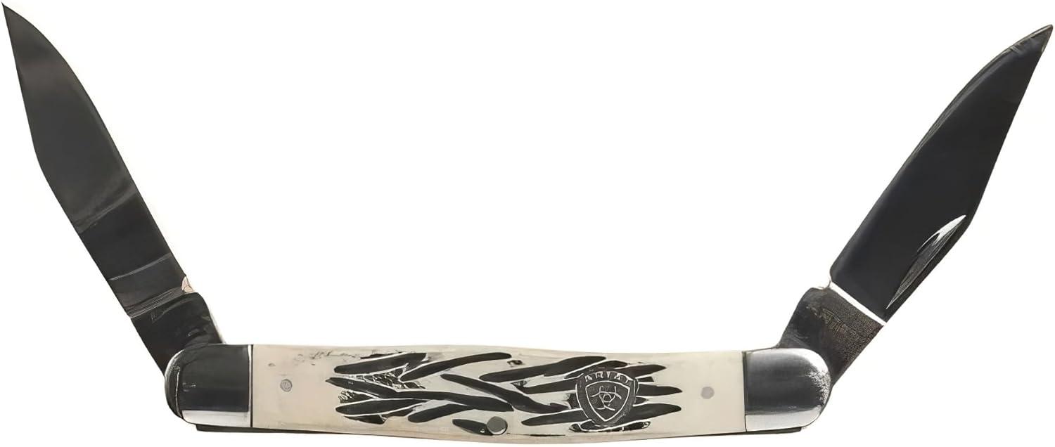 ARIAT Large Muskrat Folding Knife, Tan Wood Handle w/Shield – Two Blades(Tan)