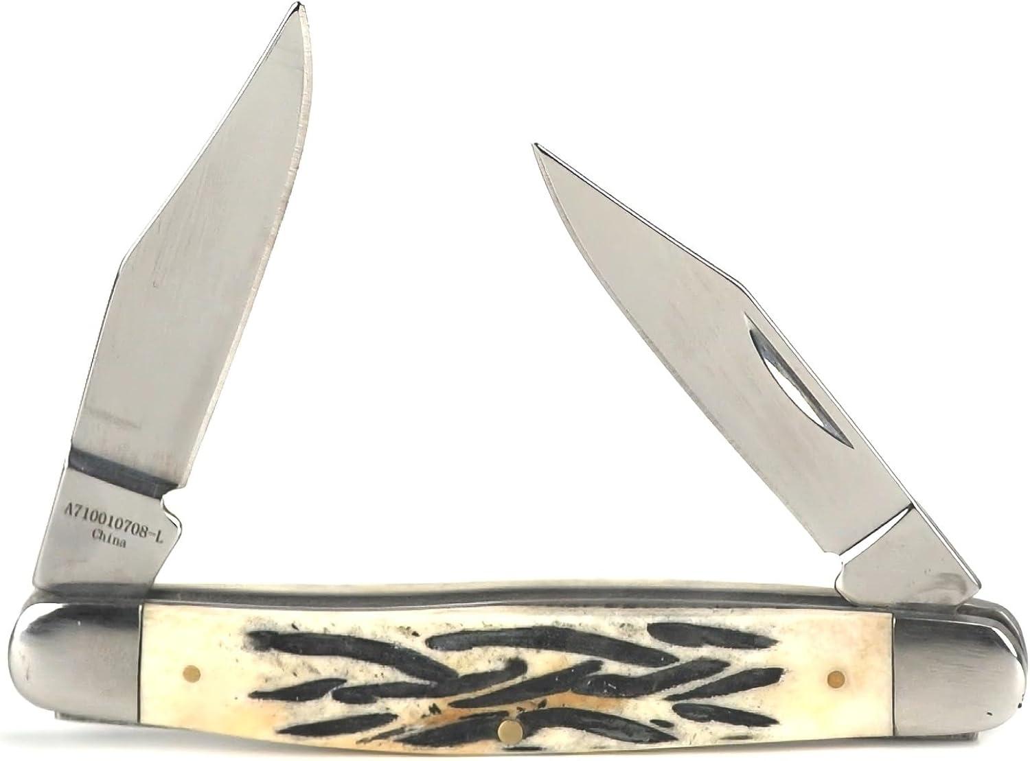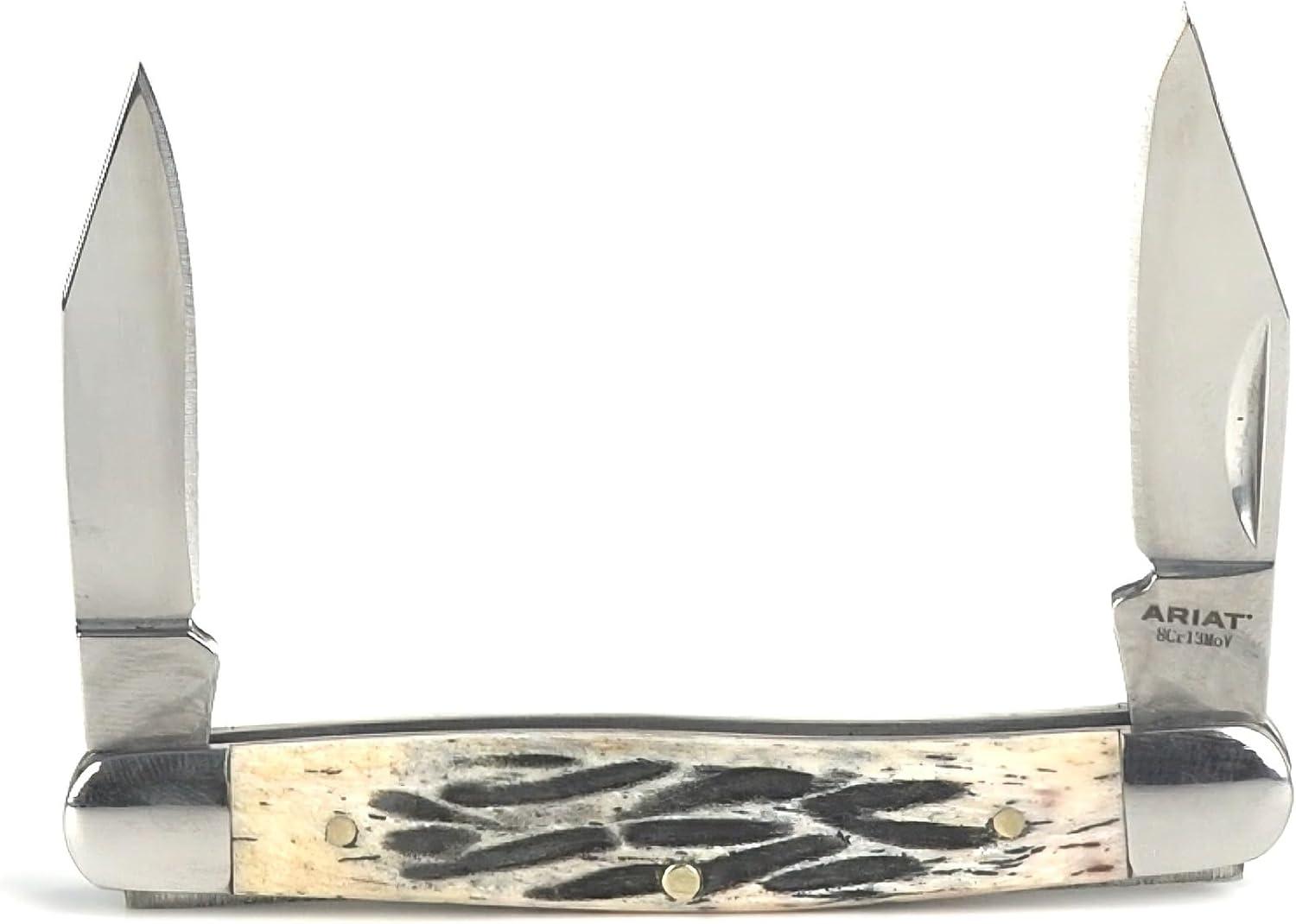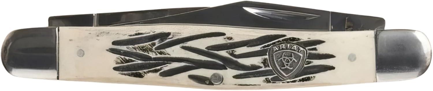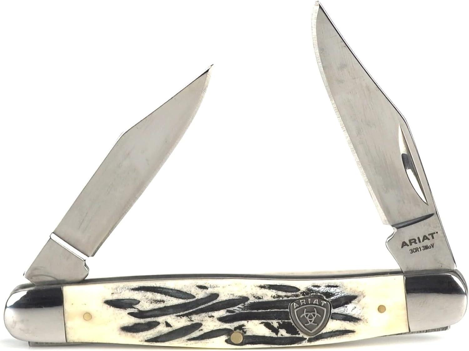 ARIAT Large Muskrat Folding Knife, Tan Wood Handle w/Shield – Two Blades(Tan)