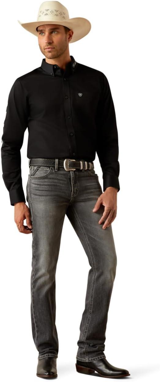 ARIAT Male Team Logo Twill Classic Fit Shirt Sea Scape USA 3X-Large(Black/Grey)