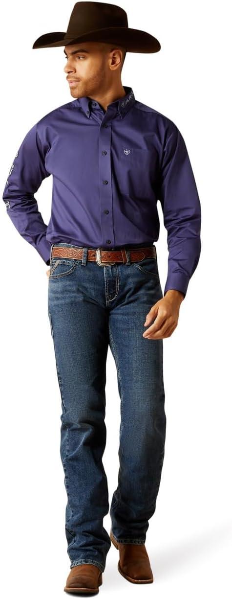 ARIAT Male Team Logo Twill Classic Fit Shirt Sea Scape USA 3X-Large(Dark Blue/Light Blue)