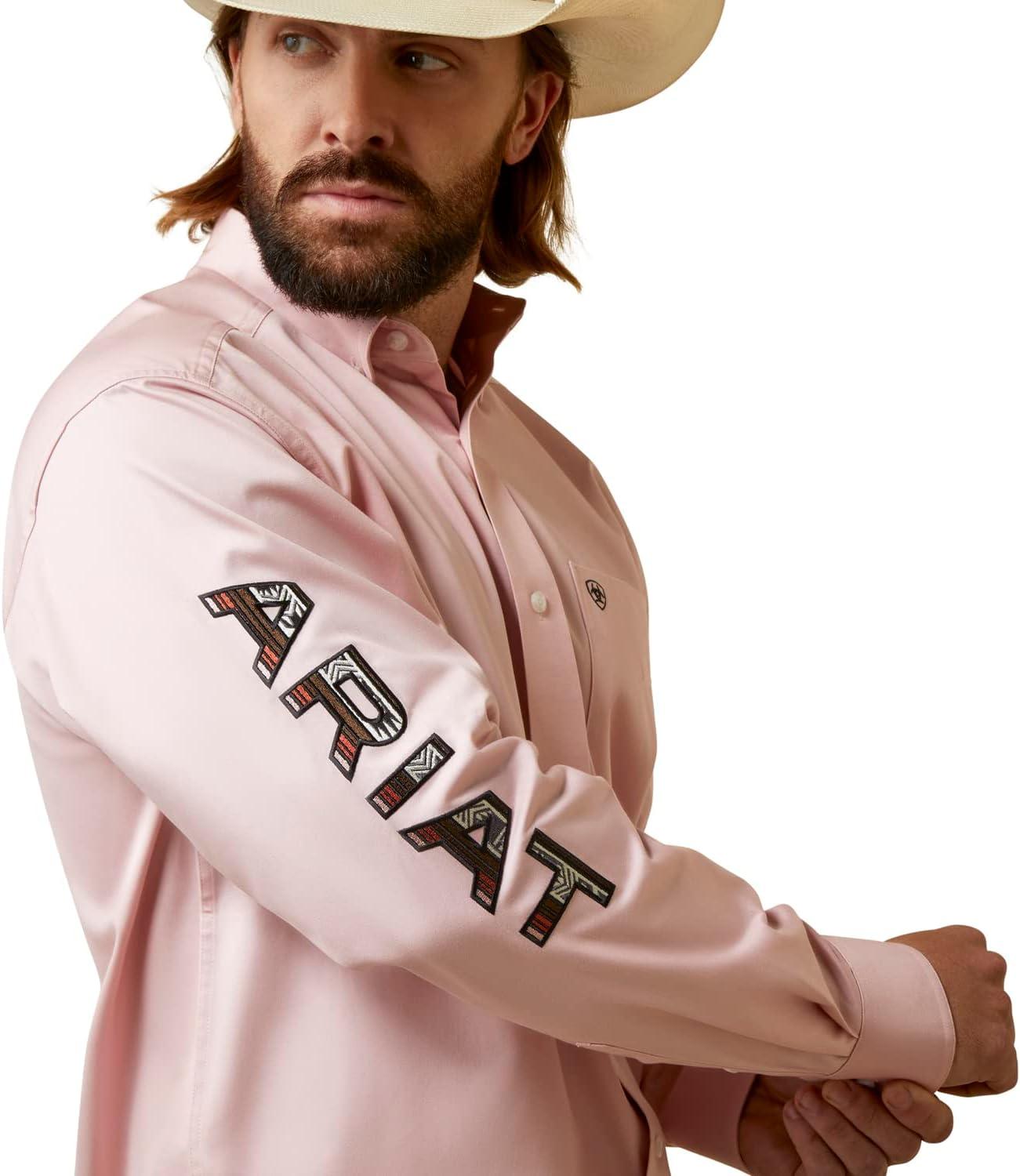 ARIAT Male Team Logo Twill Classic Fit Shirt Sea Scape USA 3X-Large(Pink)