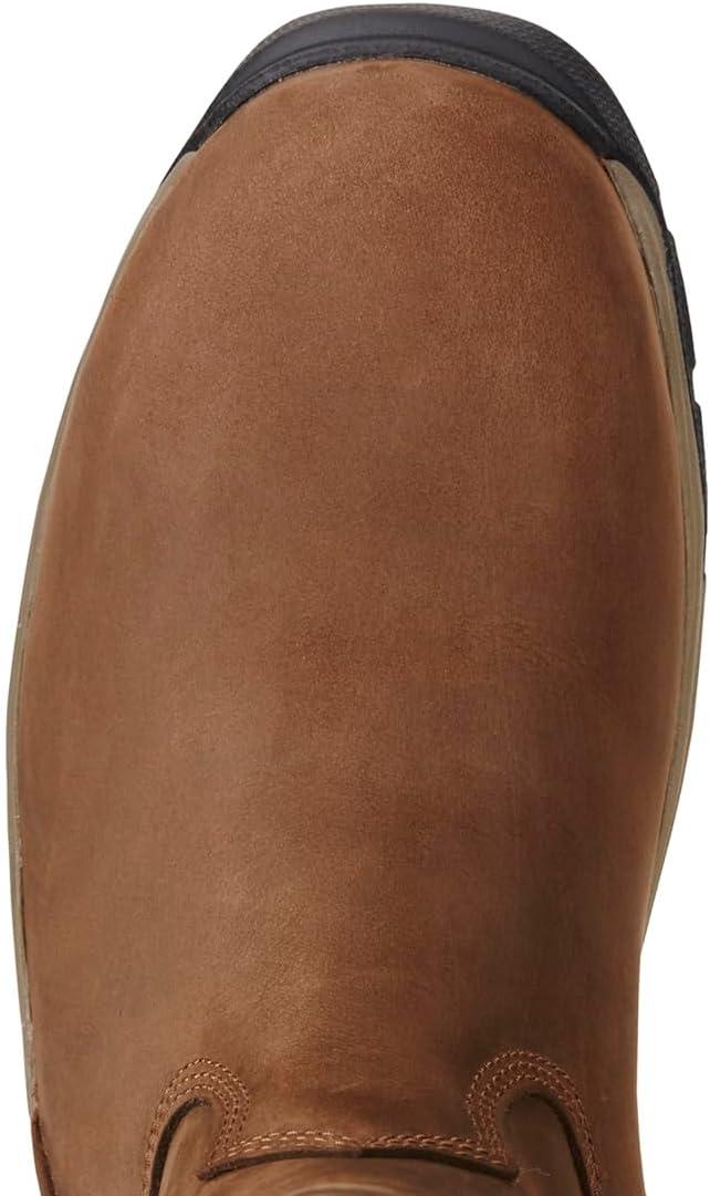 The Ariat Men's MasterGrip Pull-On SD Composite Toe Work Boots are a phenomenal choice of country fashion footwear and a reliable choice for rough work conditions. Be it the farm, barn, worksite, or some work on high terrains, these boots have got your back. Their pull-on system makes pulling on easy while the full-grain leather construction makes them durable enough to tackle wear and tear situations with ease. This pair of men’s work boots have a composite safety toe that is completely metal-free and makes these boots ideal for work sites. The mesh lining effectively manages internal perspiration with ease. With the ATS Pro technology, your feet won’t feel fatigued that supports and cushions as you move while promoting good posture. Other comfort features include shock-absorbing EVA midsole, oil- and slip-resistant Duratread outsole with kick heel feature for oil and slip resistance, a 90-degree heel, ASTM F2413-11 M/1/75 C/75 SD Type 1 rated safety toe, and the Static Dissipative technology to protect against the hazards of static buildup.