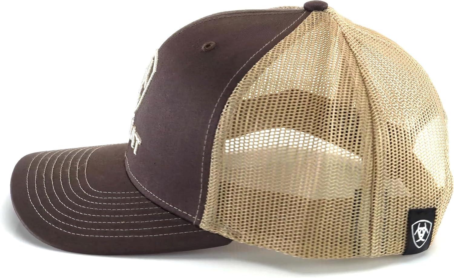 Step into a world where rugged meets refined with the Ariat Men's Richardson 112 Shield Embroidered Cap. Featuring the bold Ariat Signature Logo on a durable brown crown and highlighted with tan contrast stitching, this cap is designed for men who demand quality and style. Whether you're working on the ranch, heading to a rodeo, or enjoying a casual day out, this cap offers the perfect blend of comfort and durability. The red mesh back ensures you stay cool under the sun, while the adjustable snap closure provides a custom fit that adapts to your needs. With its robust construction and standout design, this cap is built to last and look great doing it.