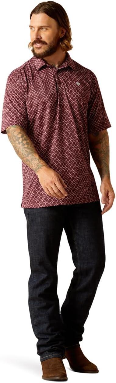 ARIAT Men’s All Over Print Polo(Dark Redwood)