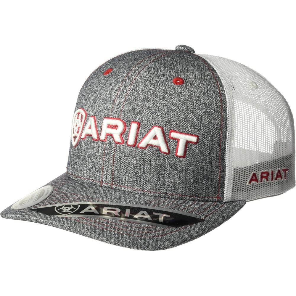 Hang out with your friends in style with this Ariat cap by medium and f western products. The grey cap has a large embroidered Ariat signature logo on the front in red and white. The back is white mesh and has a 7 post snap closure to get that perfect fit. You will reach for this good looking and functional cap every time you leave the house.