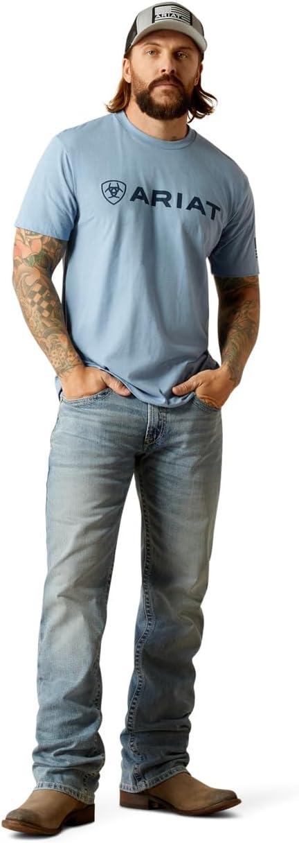 ARIAT Mens Barb Shield T-Shirt(Light Blue Heather)