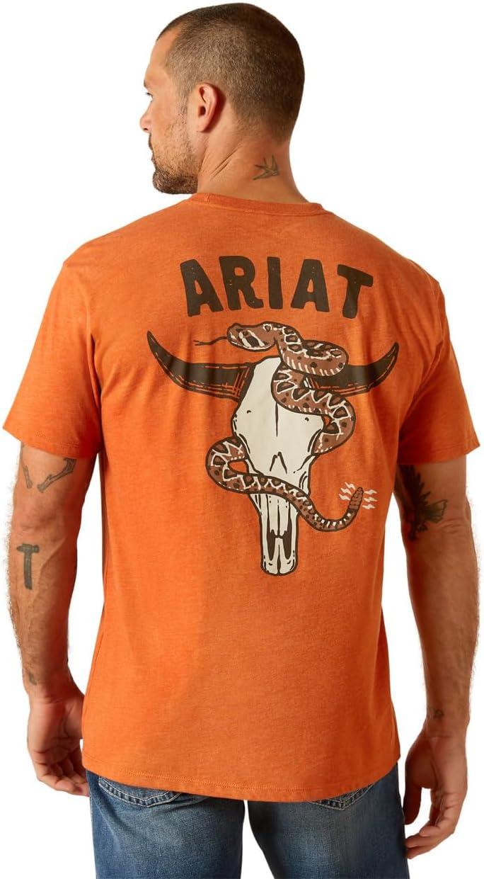 ARIAT Men’s Buckaroo T-Shirt, Buckhorn(Adobe Heather/Rattler Skull)
