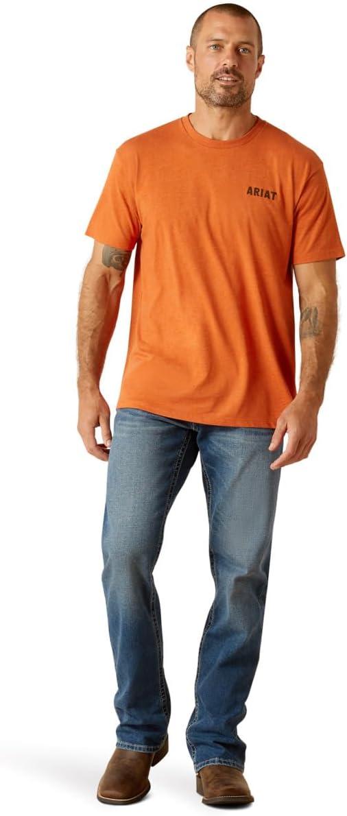 Ariat’s men’s graphic tees are created with a high quality blend of cotton and polyester that create a soft, comfortable tee that is perfect for the barn, work or town. They feature moisture wicking technology to help pull moisture from the skin keeping you dry and comfortable. These tees come in many designs that are sure to fit any person’s style. Ariat is a leader in developing advanced technologies to deliver products that outperform in a variety of demanding environments. The brand partners with world-class biomechanical research groups and testing labs to improve product performance, comfort, and durability – while focusing on real-world product functionality. Ariat works with global suppliers to develop new materials that are lighter, cooler, and more durable than anything in the market. The brand field-tests all of its products to consistently raise the bar for functionality and style. Here at Ariat, we are committed to delivering performance footwear and clothing with an emphasis on technology and innovation. Today, Ariat’s world-class product team builds innovative and award-winning performance products for all types of outdoor and work environments.