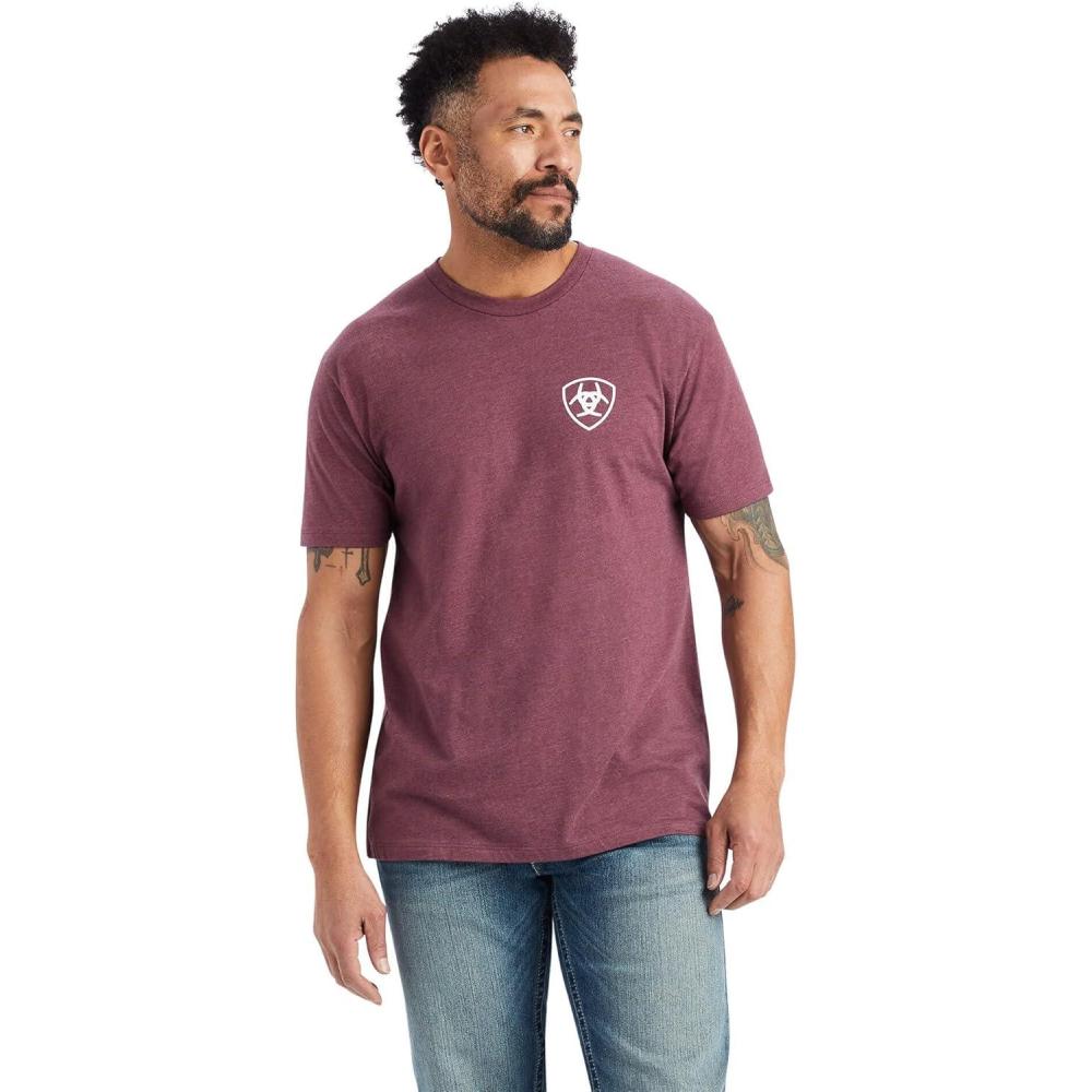 ARIAT Men’s Buckaroo T-Shirt, Buckhorn(Burgundy Heather/Minimalist)