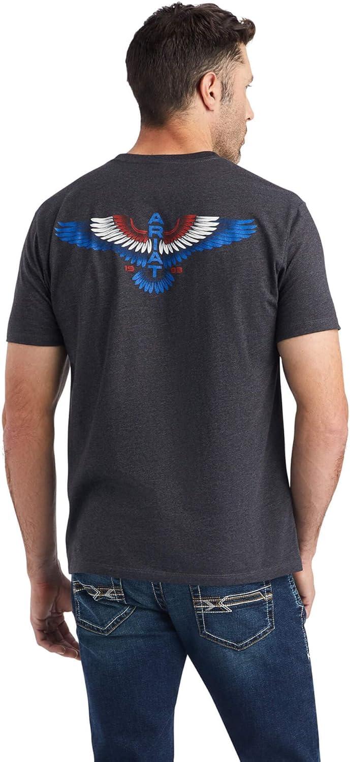 ARIAT Men’s Buckaroo T-Shirt, Buckhorn(Charcoal Heather/Wingspan)