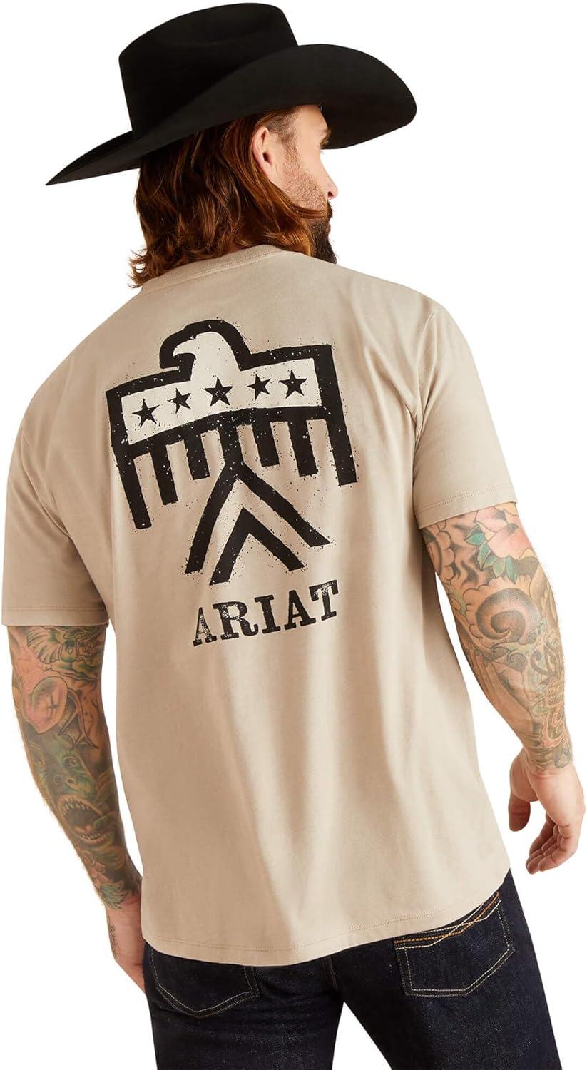 ARIAT Men’s Buckaroo T-Shirt, Buckhorn(Khaki Heather/Thunderbird)