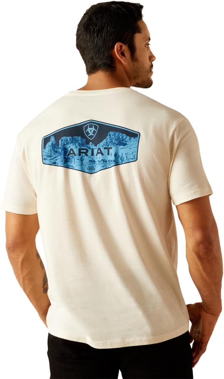 ARIAT Men’s Buckaroo T-Shirt, Buckhorn(Off White/Sedona Peaks)