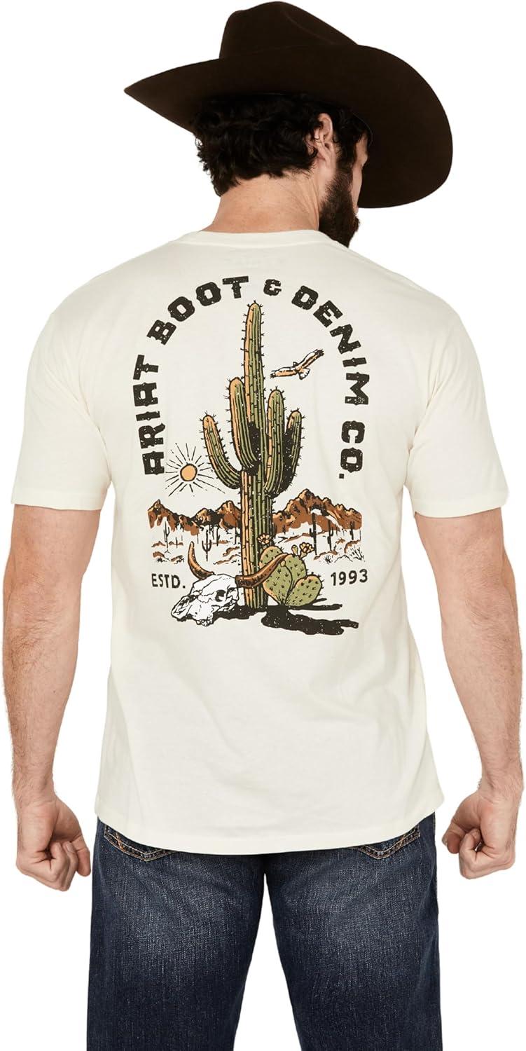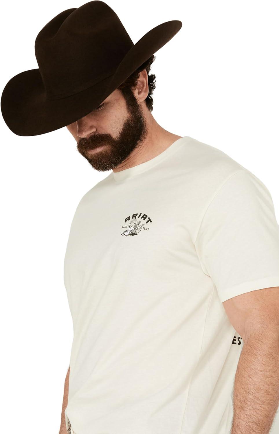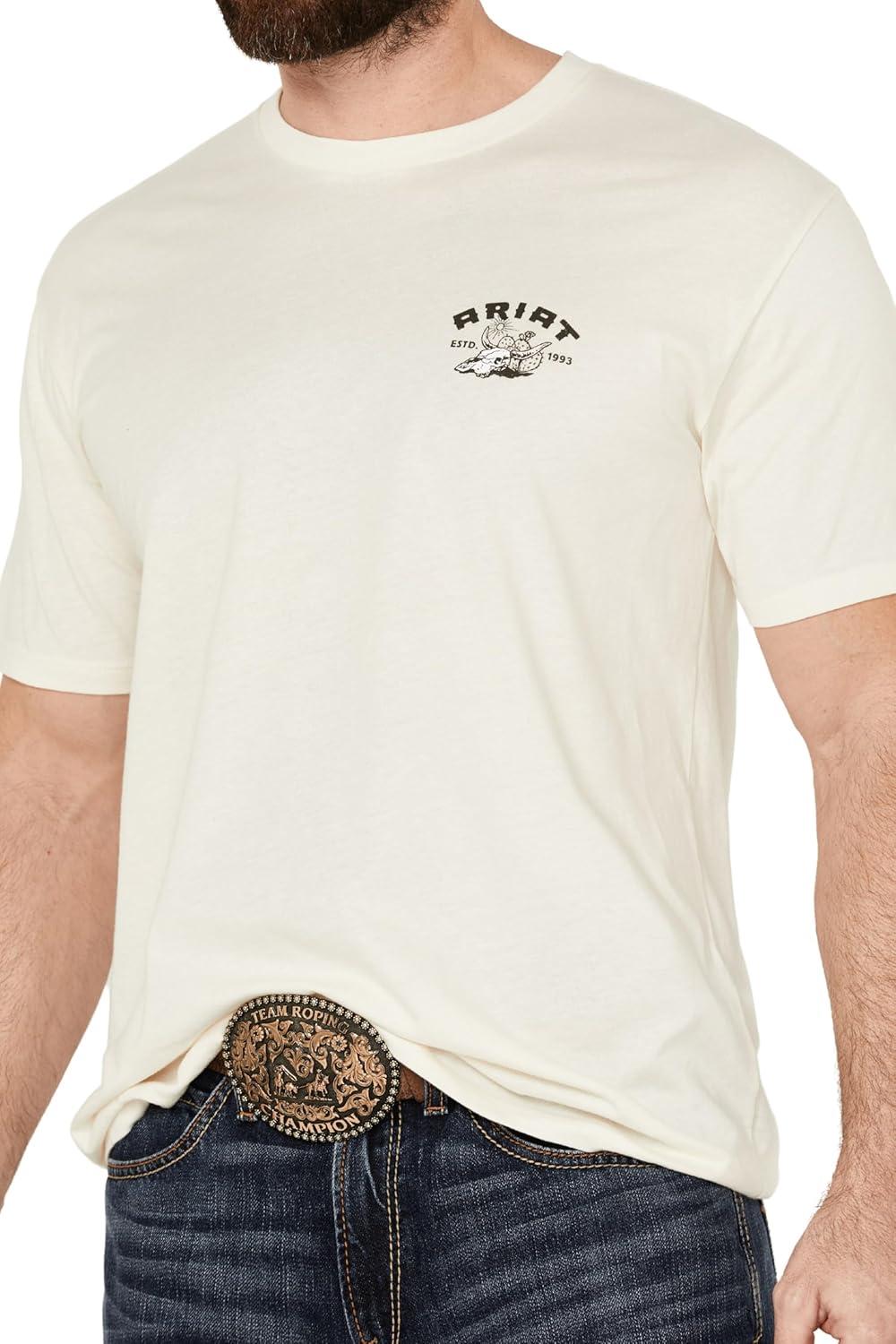 ARIAT Men’s Buckaroo T-Shirt, Buckhorn(Off White/Southwest Curve)