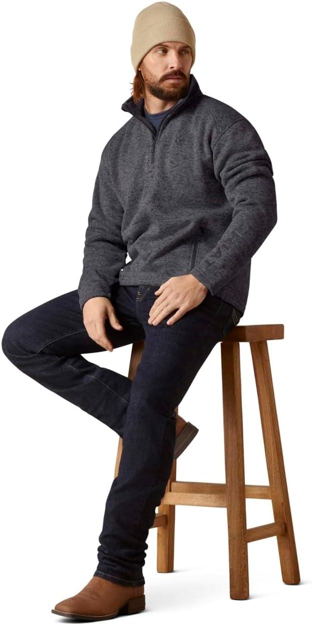 ARIAT Men’s Caldwell Logo 1/4 Zip Sweater(Grey)