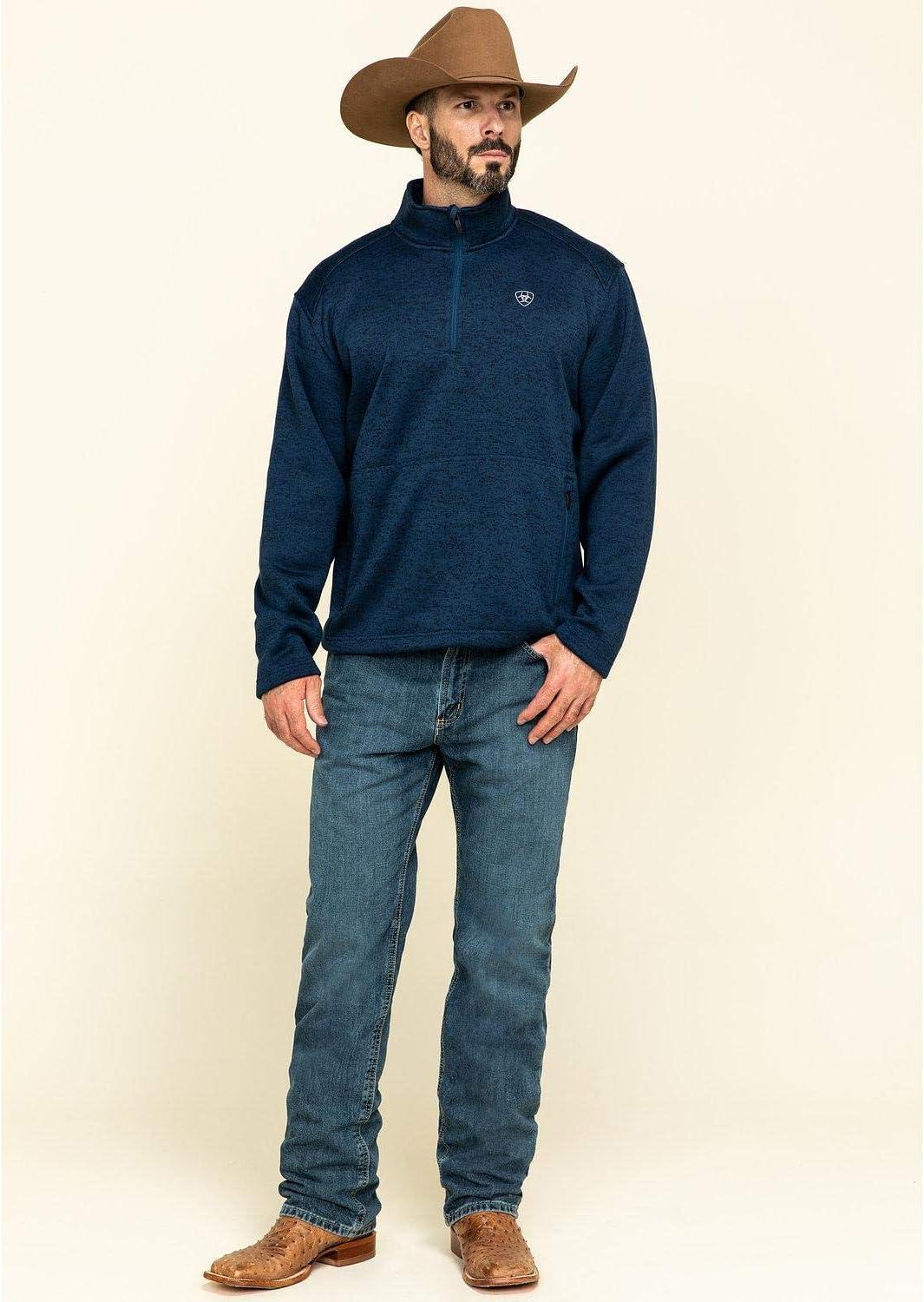 Ariat Men’s Caldwell Logo 1/4 Zip Sweater(Indigo Heather)