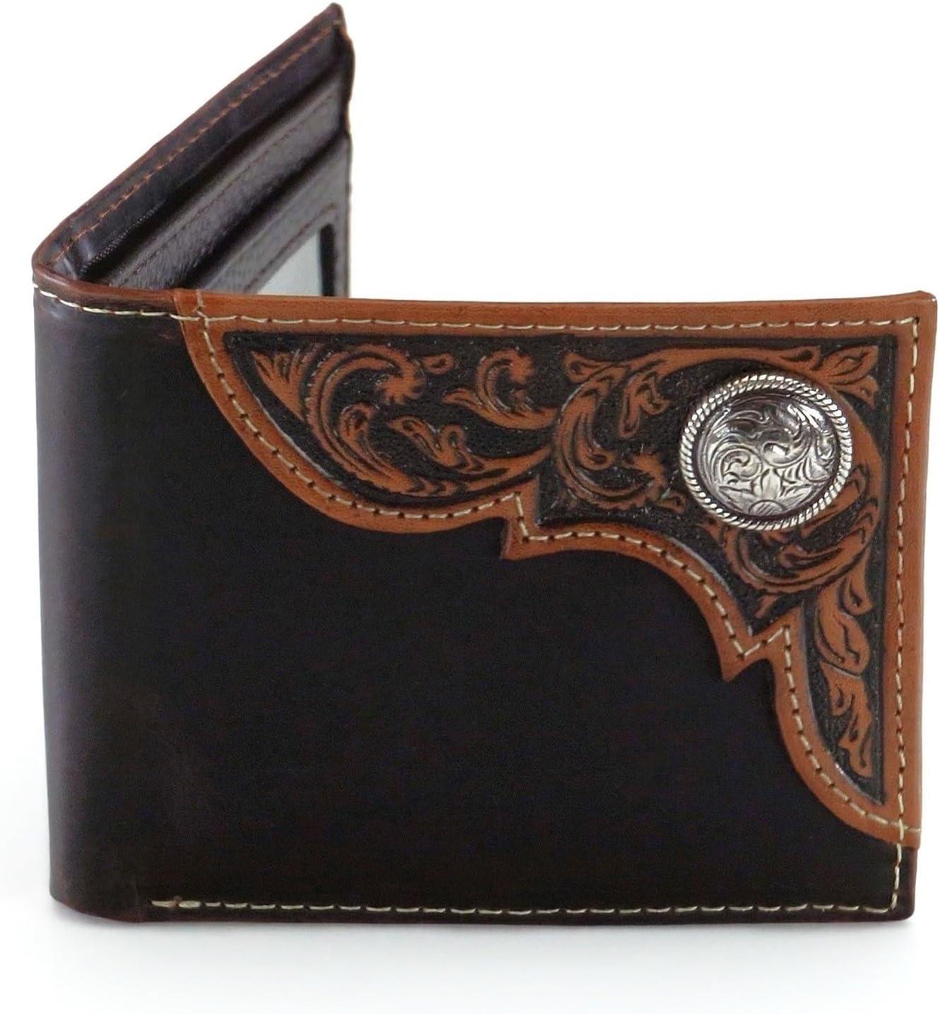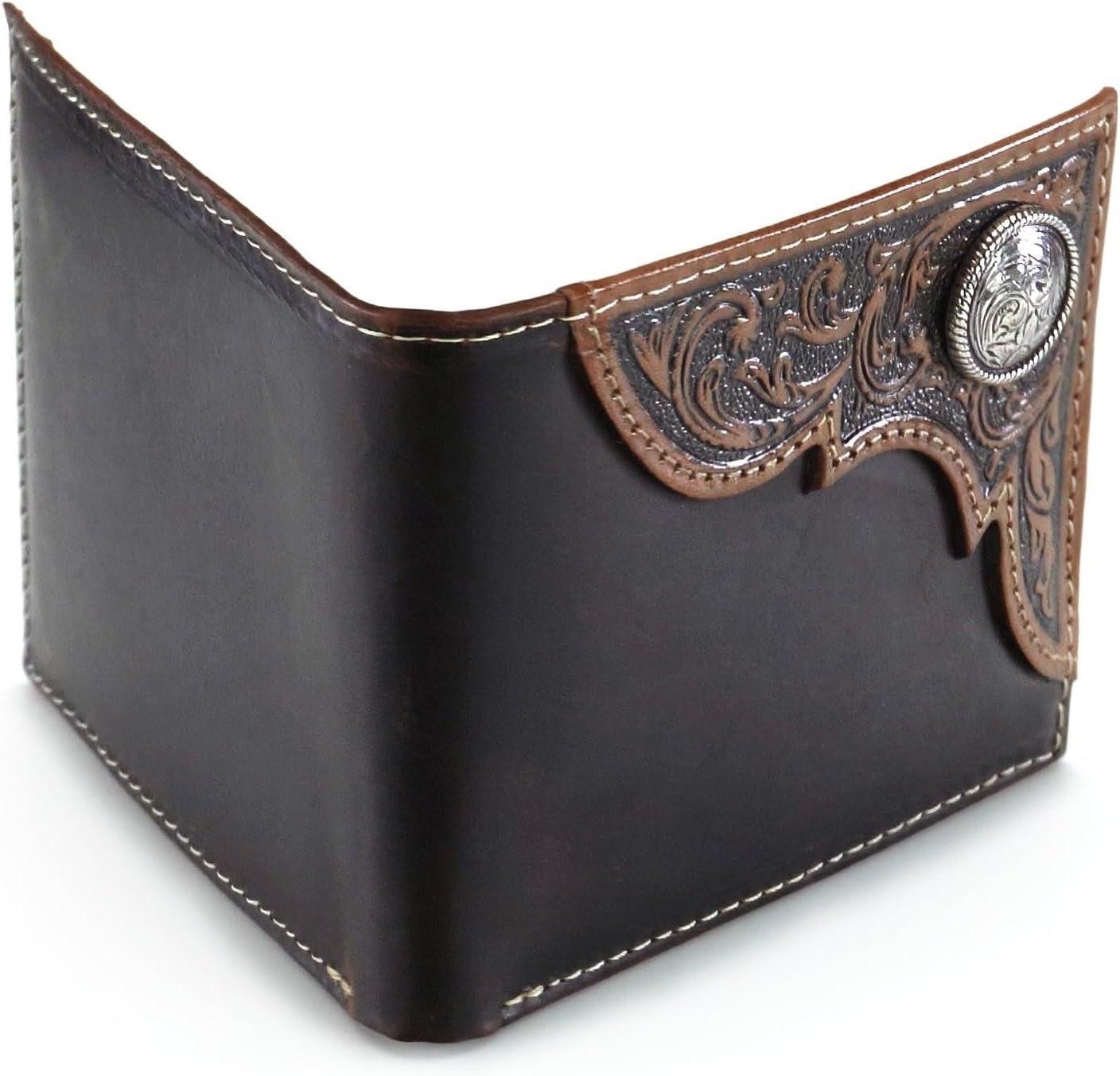 Ariat Men’s Distressed Corner Over Circle Trifold Wallet(Tan)