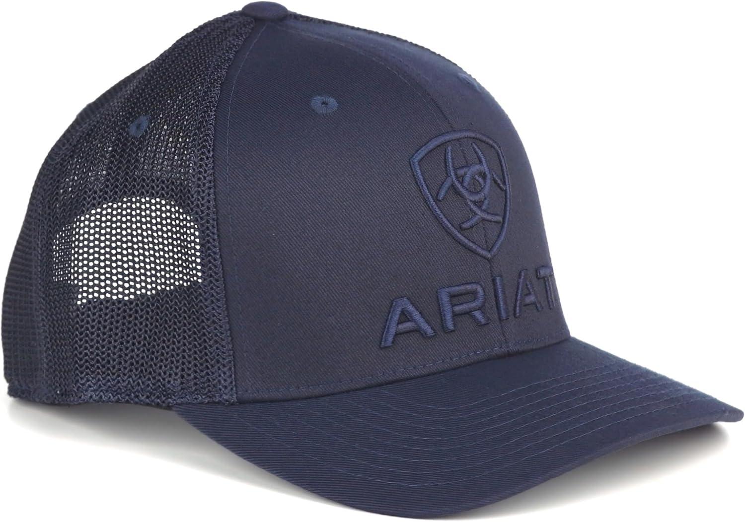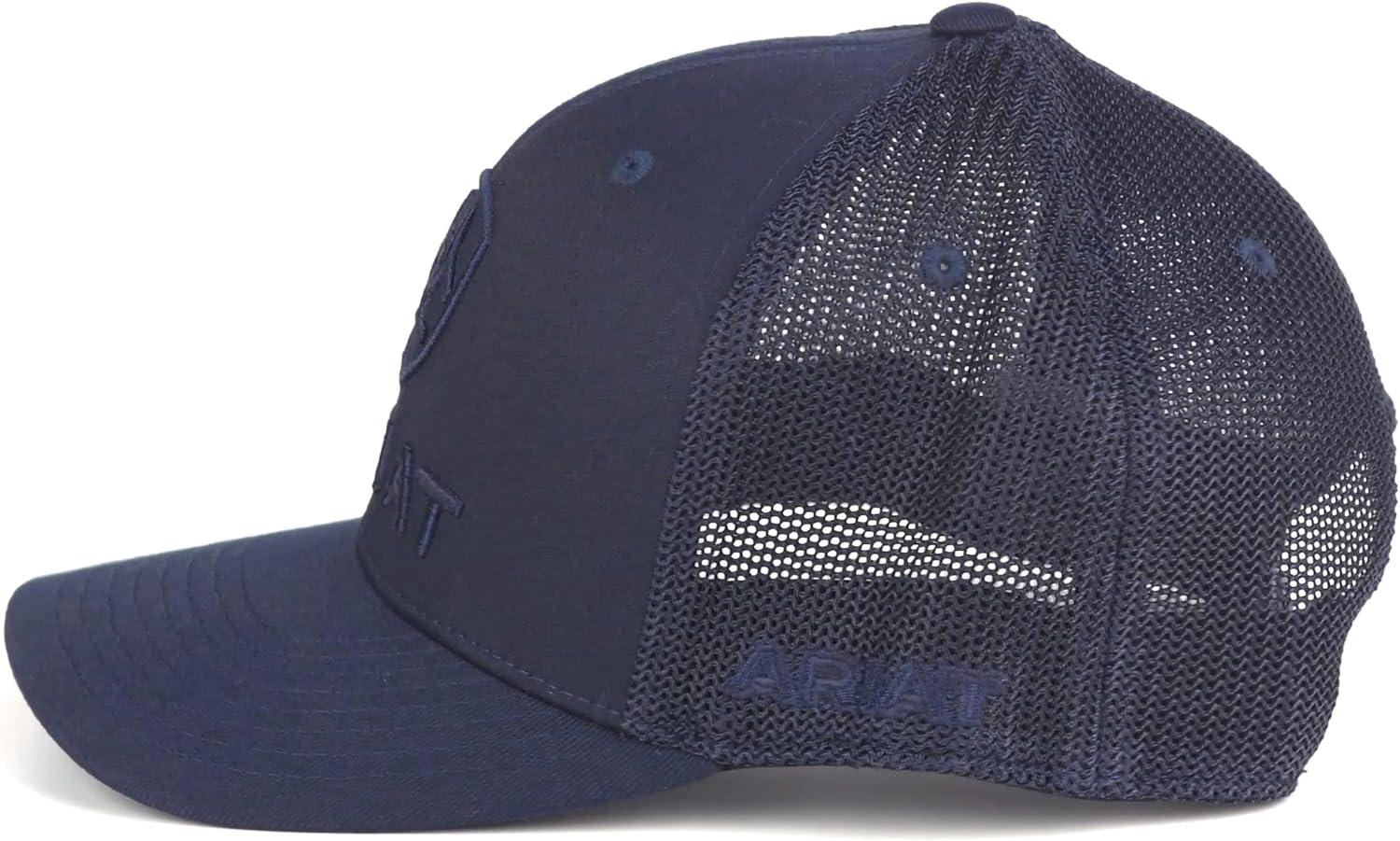 ARIAT Men’s Flexfit 110 Snapback Cap, Navy with Structured Logo Front, Mesh Back, Polyester-Cotton Blend