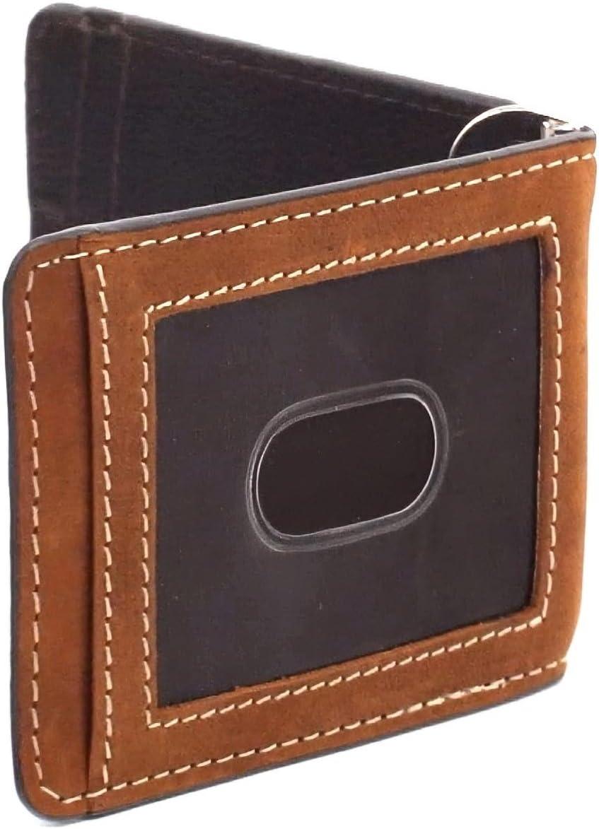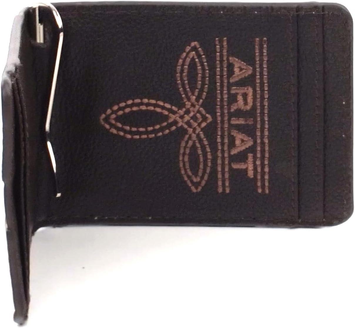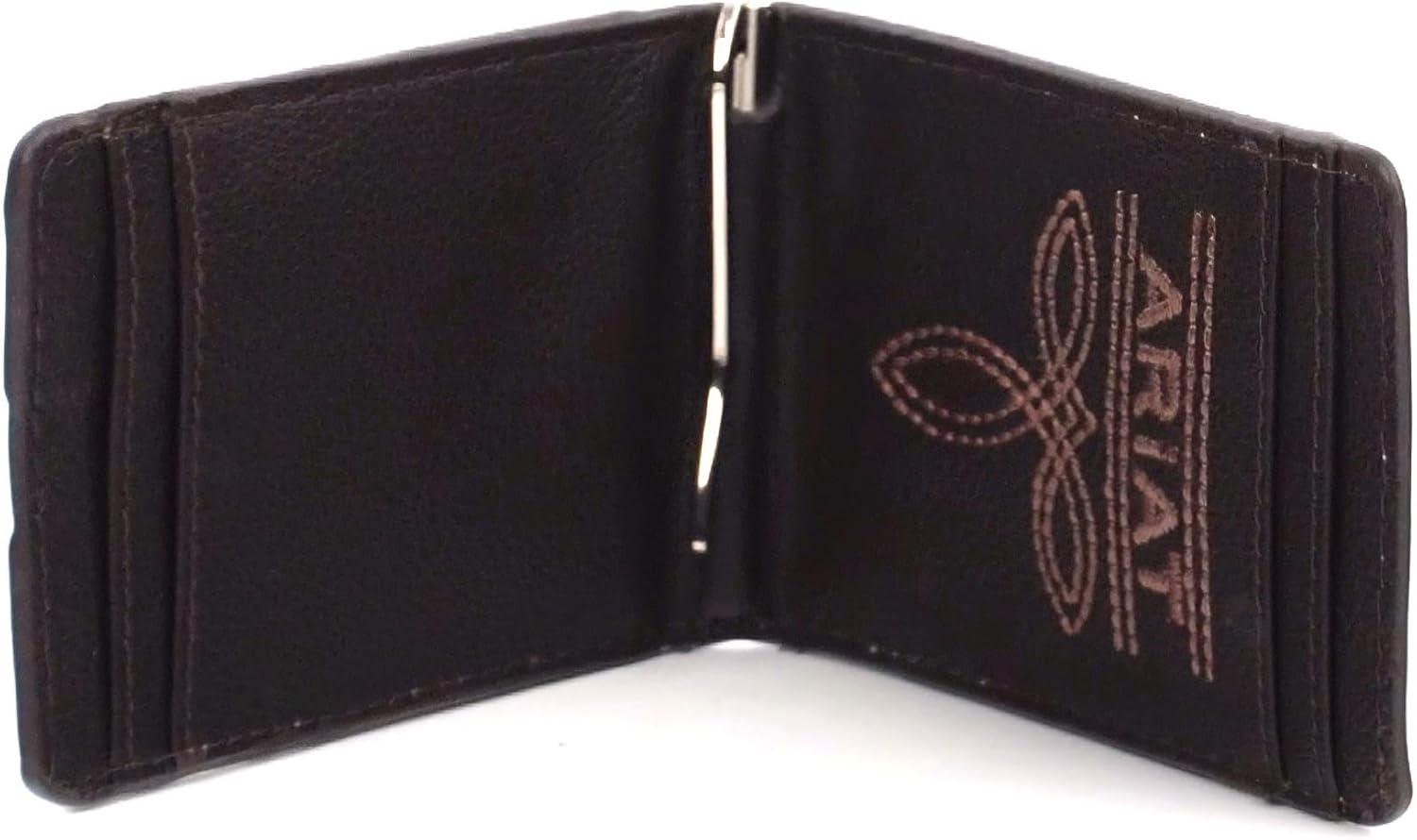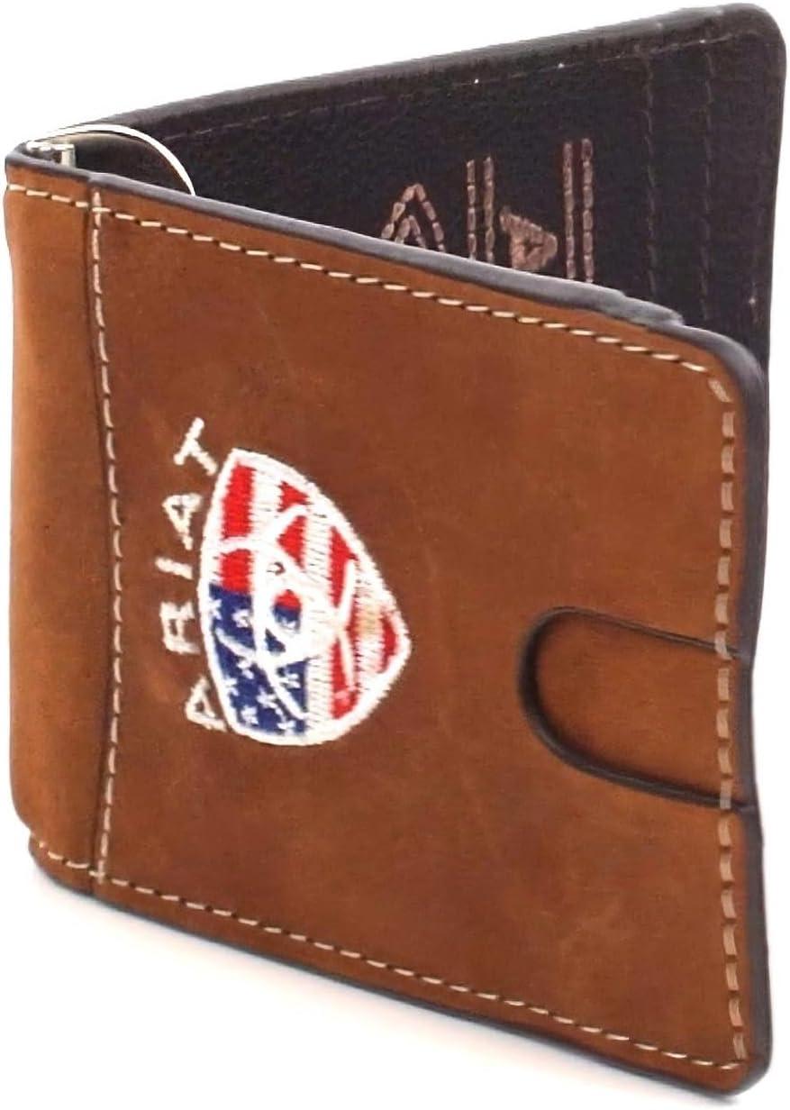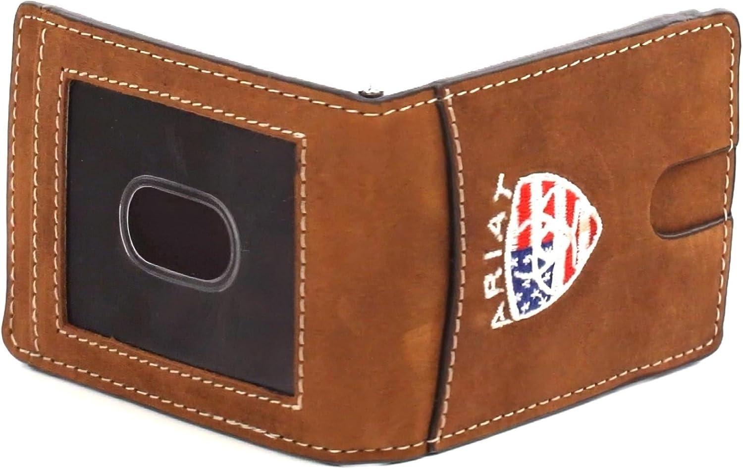 ARIAT Men’s Leather Bifold Money Clip Wallet with American Flag Shield Embroidery(Western)