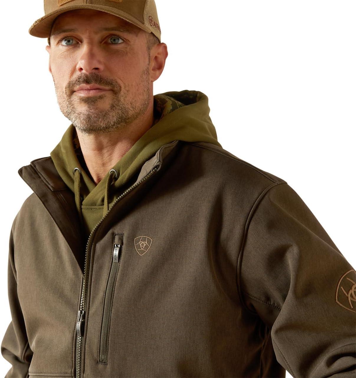 ARIAT mens Logo Softshell Jacket(Earth Green Heather)