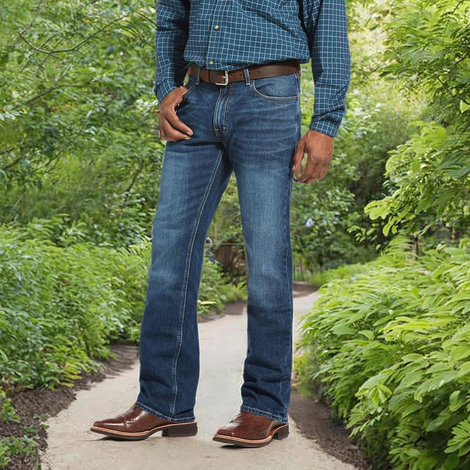 The Ariat Men’s M4 Low Rise Stretch Legacy Boot Cut Jean is a modern take on a classic style. Comfortable and durable, the boot-cut M4 jean is relaxed through the waist, hip, and thigh for a fit that looks good on everyone. These men’s jeans feature no-rub comfort inseams with flat construction that prevents abrasion against the skin. Crafted with 12.75 oz ring-spun stretch denim with 99% Cotton and 1% Spandex. These classic jeans for men feature a 19” boot cut leg opening that stacks perfectly over boots. Practical details like heavy-duty zippers and hardware, extra deep front pockets, and a Loop Lock that reinforces the back belt loop for extra durability ensure they stand up to tough jobs. These men’s stretch jeans deliver the ideal balance of comfort, durability, and Western style.