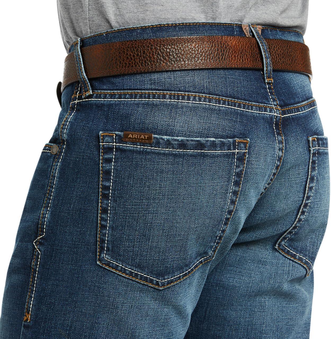 ARIAT Mens M5 Straight Stretch Remming Stackable Straight Leg Jean(Blue)