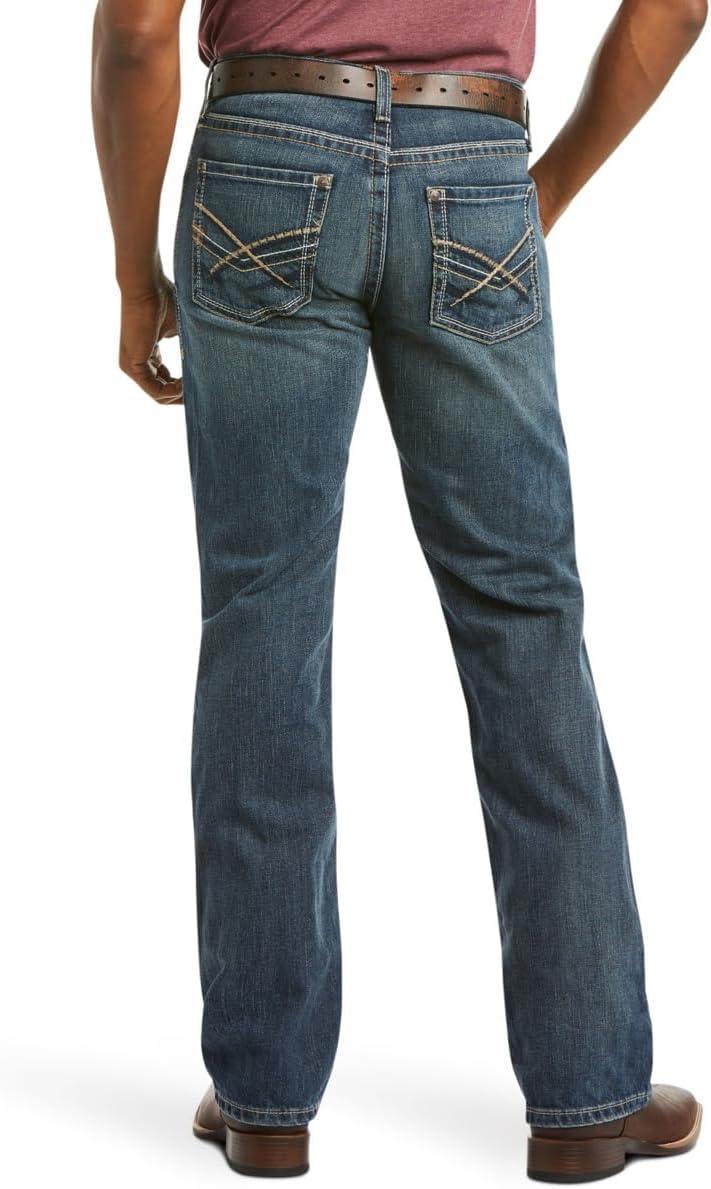 The Ariat Men's M5 Straight Stretch Remming Stackable Straight Leg Jean is ruggedly handsome and supremely comfortable. These jeans are ready for wherever the day or night takes you. The straight leg M5 is fitted through the hip and thigh for a modern yet classic look. Made with the H2Lo finishing process that uses half the water of traditional methods. These Men's jeans feature no-rub comfort inseams with flat construction that prevents abrasion against the skin. Crafted with 12.75 oz ring-spun stretch denim with 73% Cotton, 25% Polyester, and 2% Spandex. These stacked jeans feature an 18.5-inch straight-leg opening for a slimmer fit over boots. Practical details like heavy-duty zippers and hardware, extra deep front pockets, and a Loop Lock that reinforces the back belt loop for extra durability ensure they stand up to tough jobs. These Men's stretch jeans deliver the ideal balance of comfort, durability, and Western style.