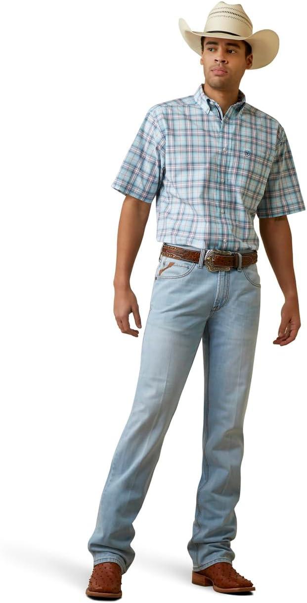 The Ariat Men's M5 Straight Stretch Remming Stackable Straight Leg Jean is ruggedly handsome and supremely comfortable. These jeans are ready for wherever the day or night takes you. The straight leg M5 is fitted through the hip and thigh for a modern yet classic look. Made with the H2Lo finishing process that uses half the water of traditional methods. These Men's jeans feature no-rub comfort inseams with flat construction that prevents abrasion against the skin. Crafted with 12.75 oz ring-spun stretch denim with 73% Cotton, 25% Polyester, and 2% Spandex. These stacked jeans feature an 18.5-inch straight-leg opening for a slimmer fit over boots. Practical details like heavy-duty zippers and hardware, extra deep front pockets, and a Loop Lock that reinforces the back belt loop for extra durability ensure they stand up to tough jobs. These Men's stretch jeans deliver the ideal balance of comfort, durability, and Western style.