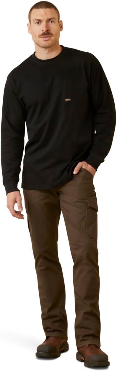 The Ariat Men’s Rebar M4 Relaxed DuraStretch Made Tough Cargo Straight Pant helps minimize trips back to the truck. This work pant has all the pockets you need for keeping job site essentials close. The unique cargo design has slots for everything from pens to pliers, with a hook and loop closure that keeps everything secure so you can focus on the task at hand. Relaxed through the waist, hip, and thigh with a mid-rise. Crafted with 9 oz DuraStretch canvas that provides durability with the freedom to move. They are the best-fitting, toughest work pants you’ll ever own. Strong but never stiff, Made Tough provides an unmatched fit, durability, and flexibility. These mid-rise stacked pants feature a 17-inch straight-leg opening that fits great with boots and casual shoes. Practical details like heavy-duty zippers and hardware, a carabiner loop, and multi-function cargo pockets with hook and loop closure, add to their functionality. Made from a blend of 98% Cotton and 2% Elastane, these men’s work pants deliver the ideal balance of comfort, durability, and style.