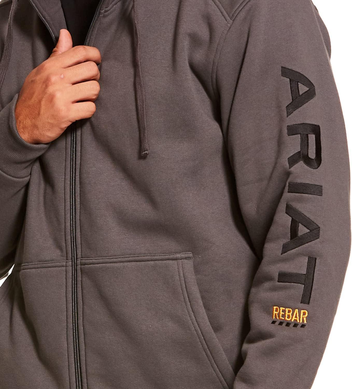 ARIAT Men’s Rebar All-Weather Full Zip Hoodie(Rebar Grey)