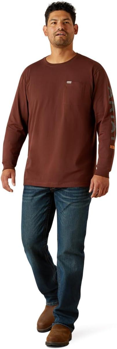 Ariat Men’s Rebar Cotton Strong Standard Logo Pocket T-Shirt(Bitter Chocolate/Charcoal)