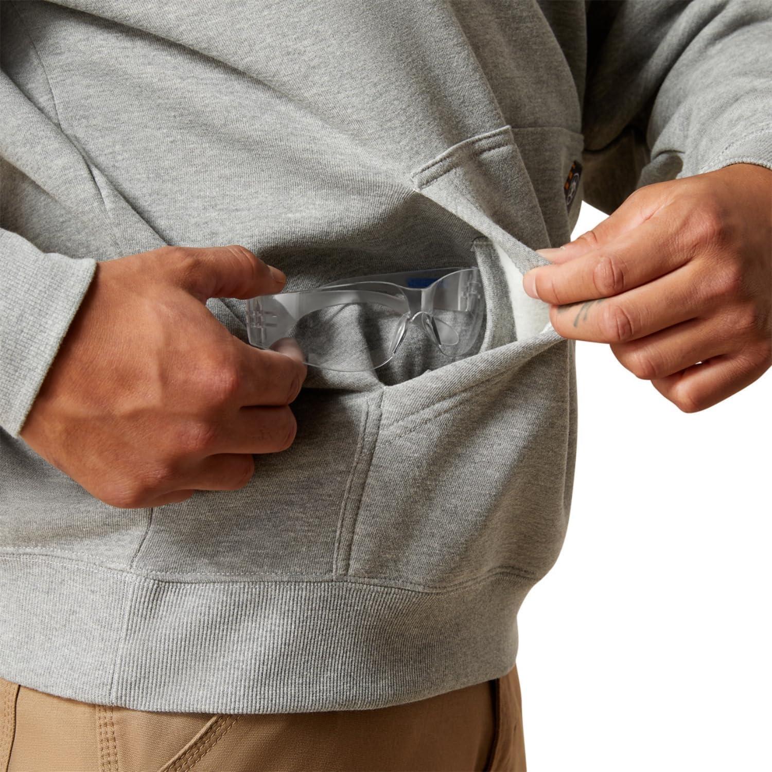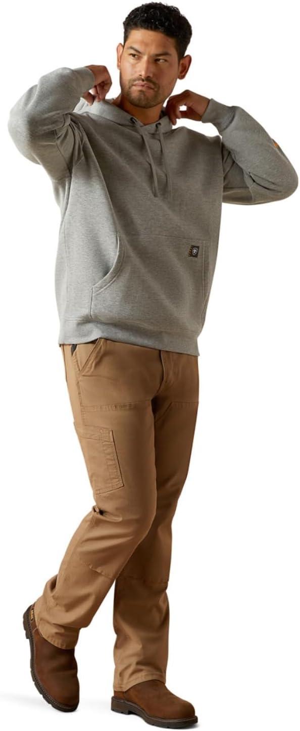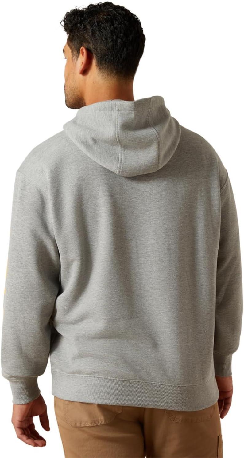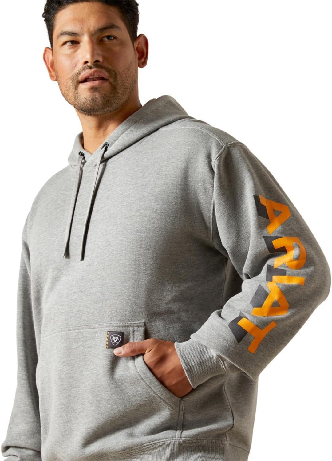 ARIAT mens Rebar Lightweight Logo Hoodie(Heather Grey/Rebar Orange)
