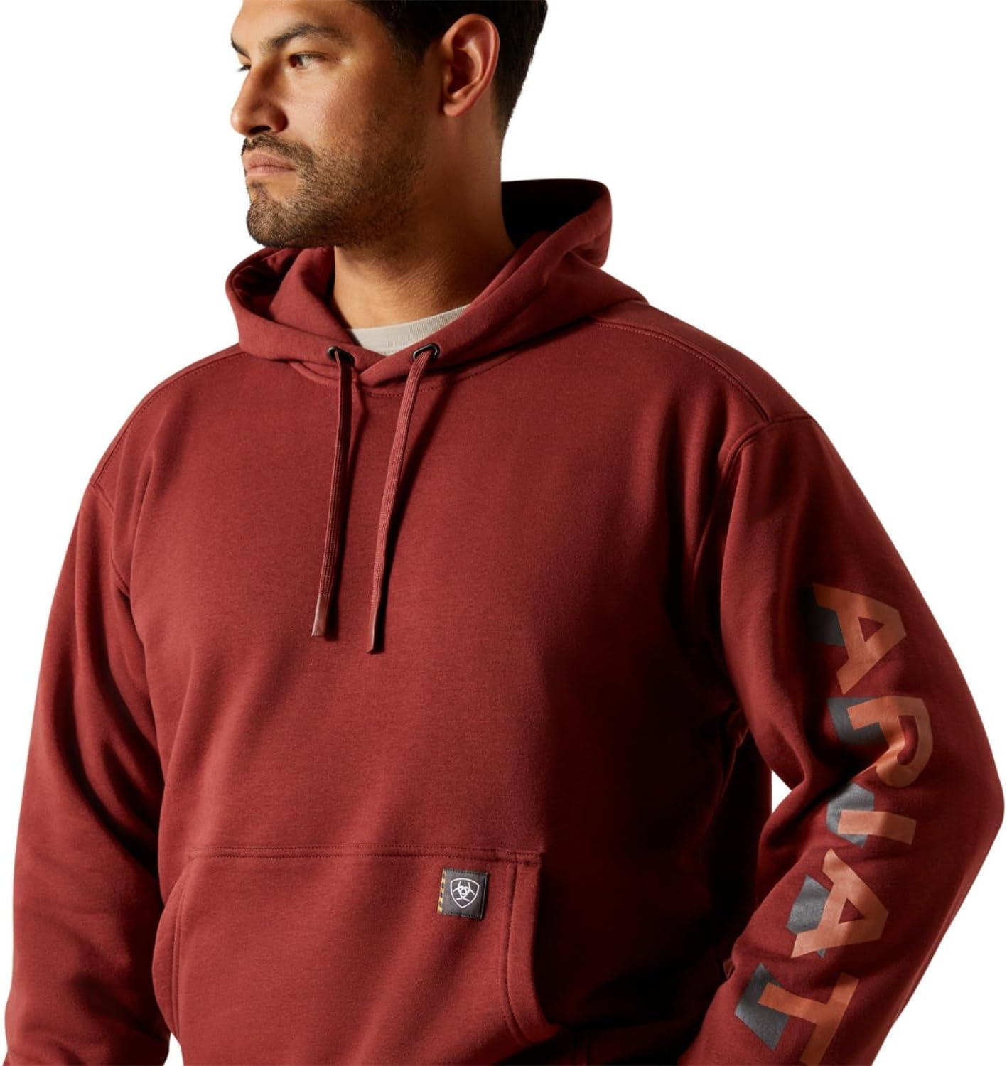 ARIAT mens Rebar Lightweight Logo Hoodie(Madder Brown)