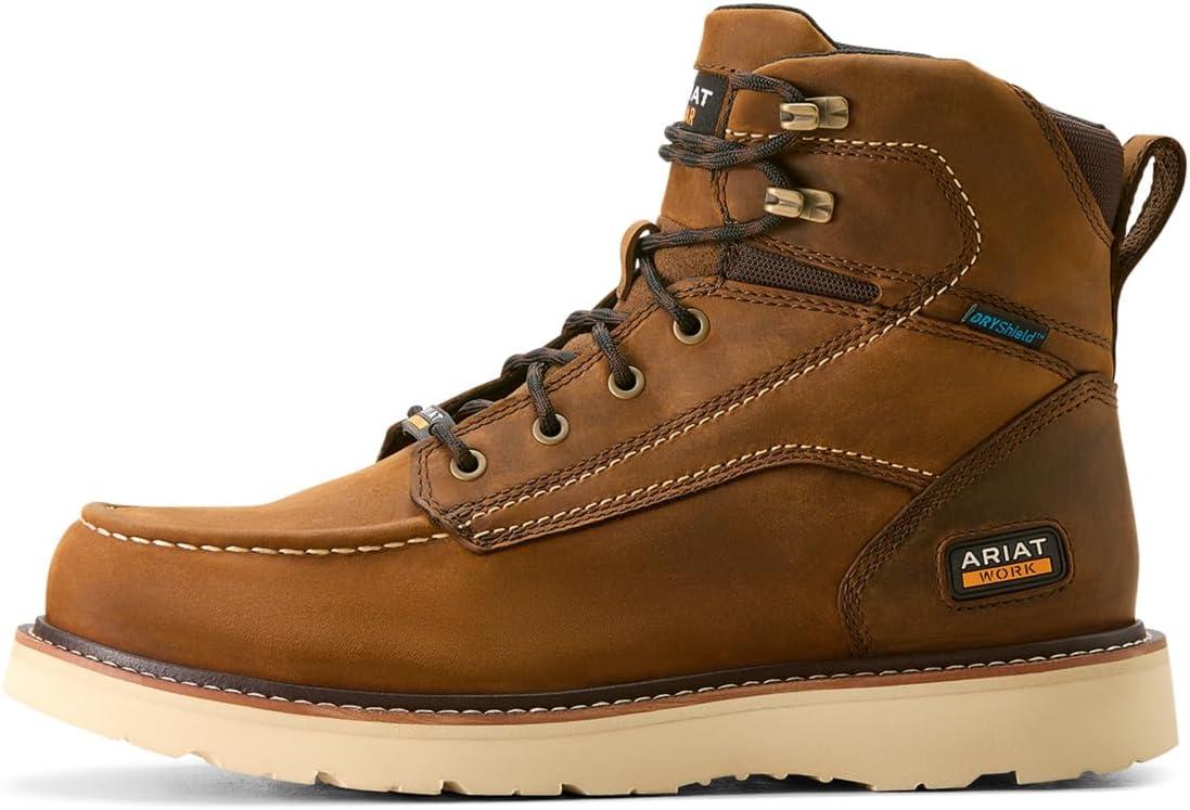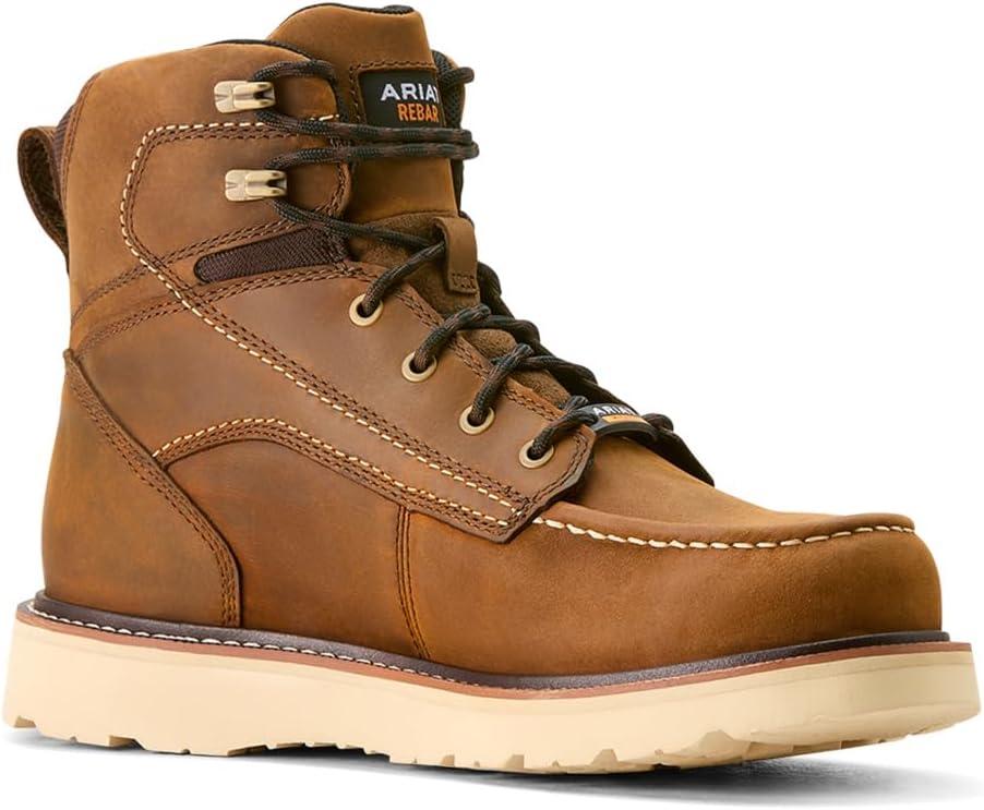 Ariat Men’s Rebar Wedge Moc Toe 6″ Waterproof Work Boot, Distressed Brown, 6