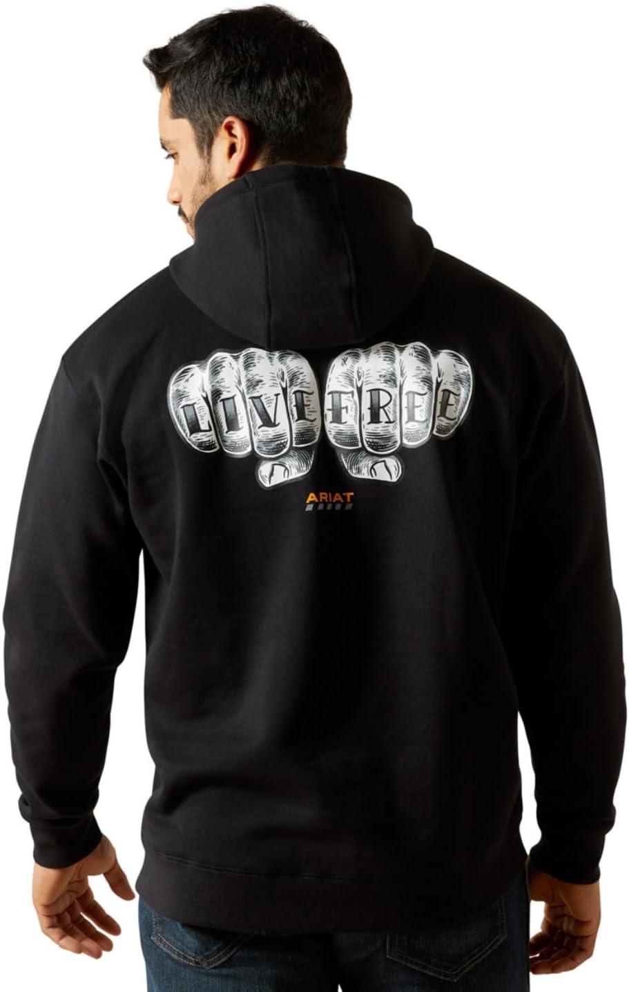 ARIAT mens Rebar Workman Bare Knuckle Hoodie(Black)