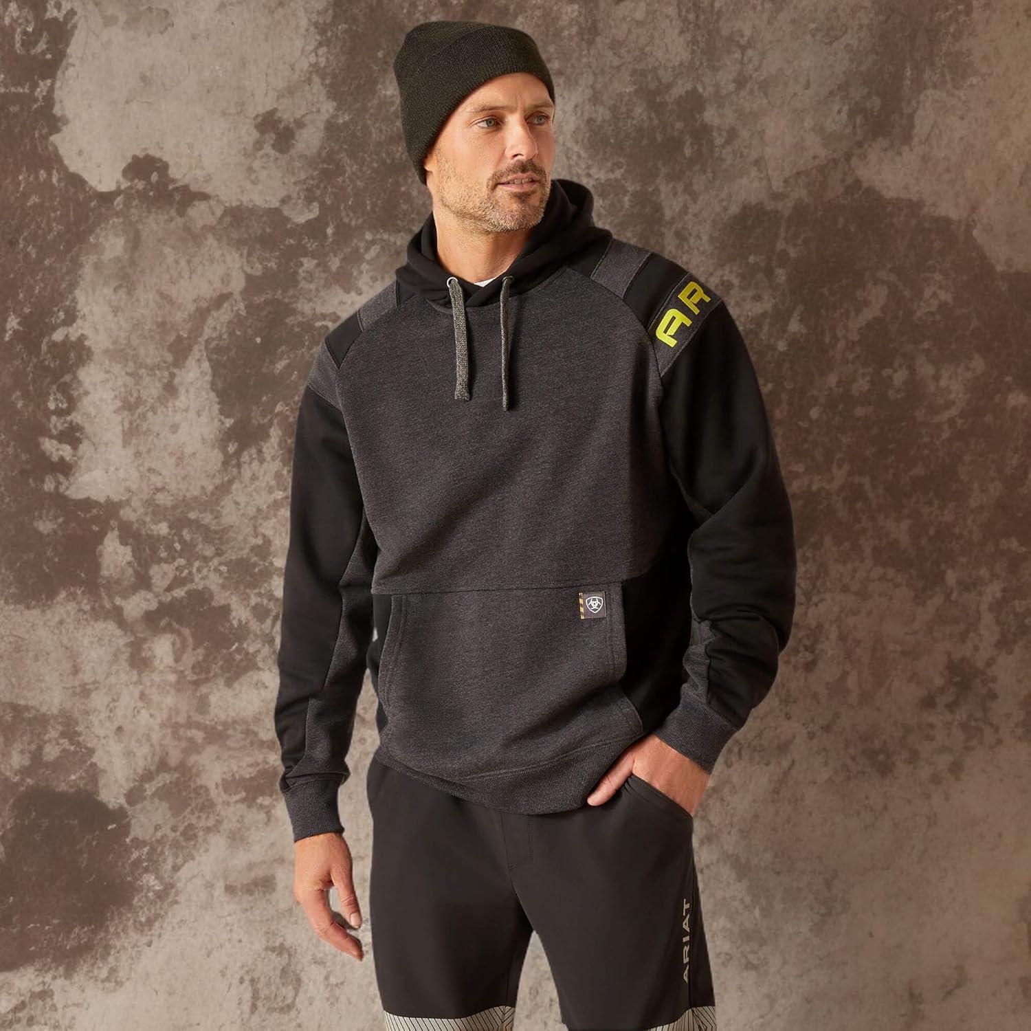 Ariat Men’s Rebar Workman Colorblock Logo Hoodie(Black/Charcoal Heather)
