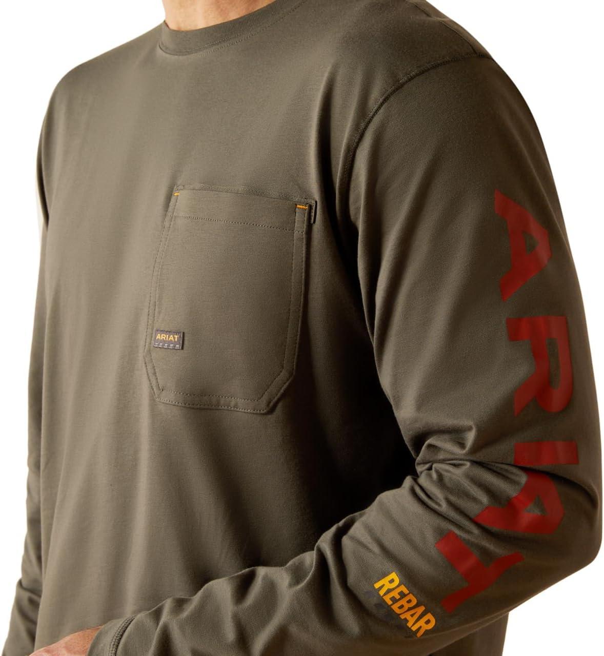 ARIAT Mens Rebar Workman Logo Long Sleeve Crew(Beluga/Red Ochre)