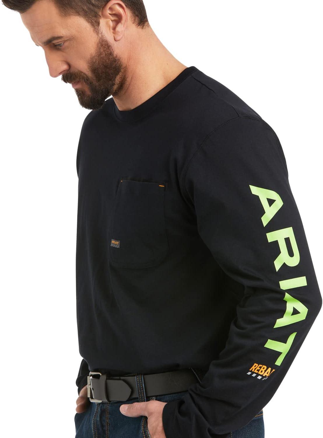 ARIAT Mens Rebar Workman Logo Long Sleeve Crew(Black/Lime)