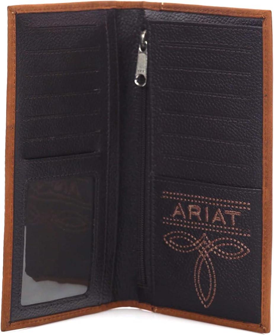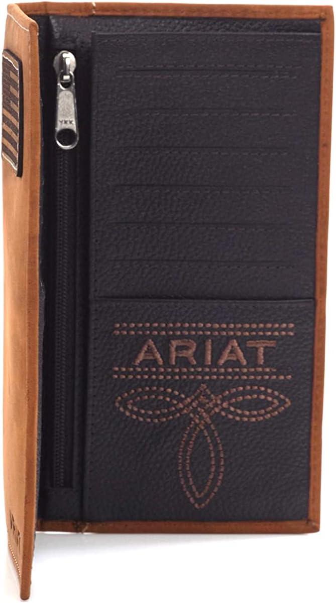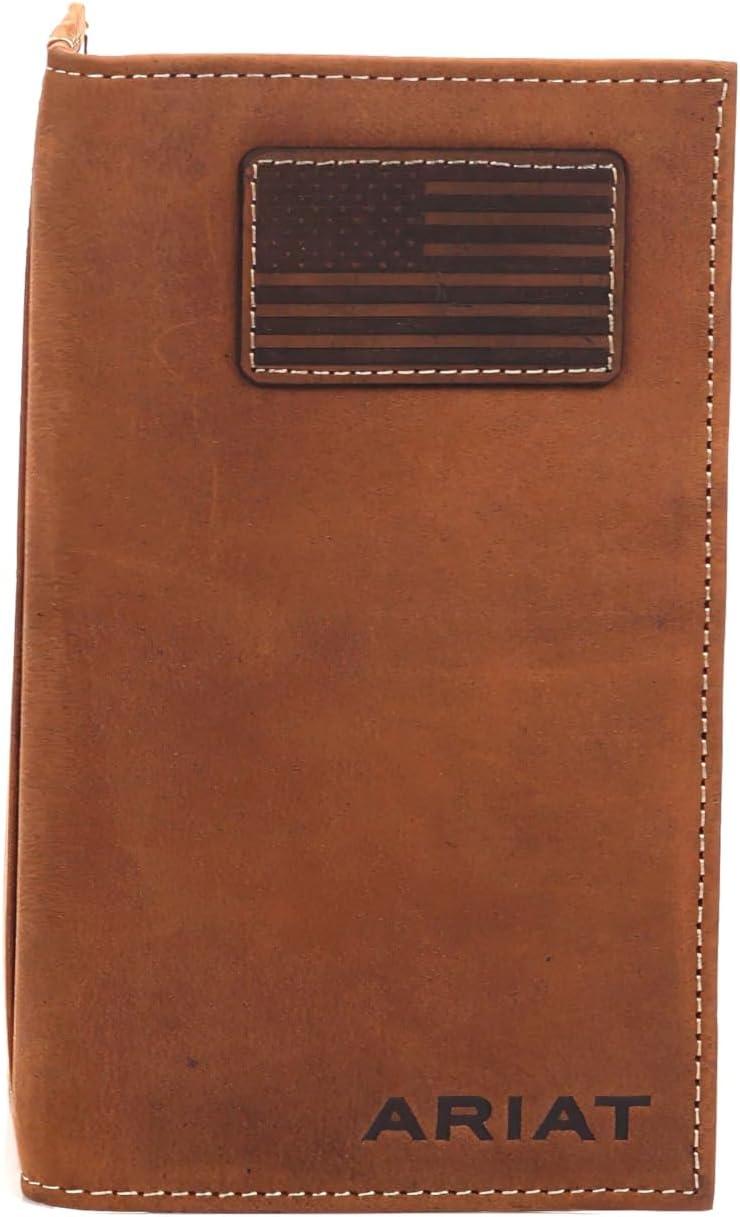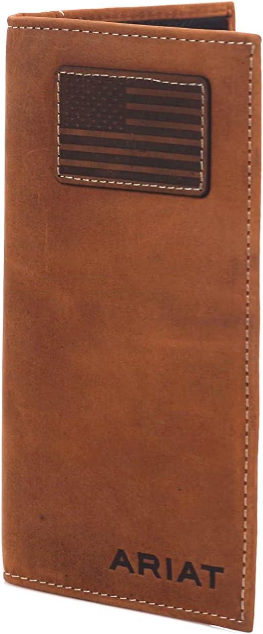 ARIAT Men’s Rodeo Wallet, Medium Brown Genuine Leather, USA Flag Patch, Multiple Card Slots, 6-1/2″ x 3-1/2″(Tan)