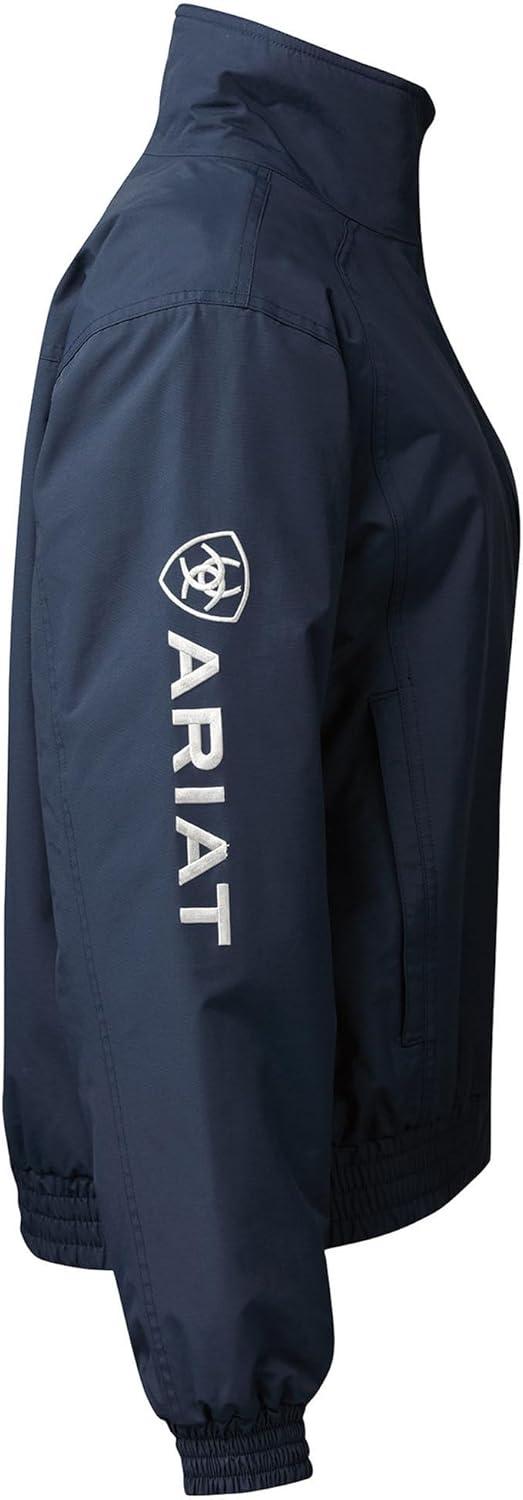 The Ariat Stable Jacket is a water and wind resistant jacket with a lightweight polyfill quilted lining. Featuring a mock collar, fitted hem and logo embroidery as well as zippered entry for team embroidery.