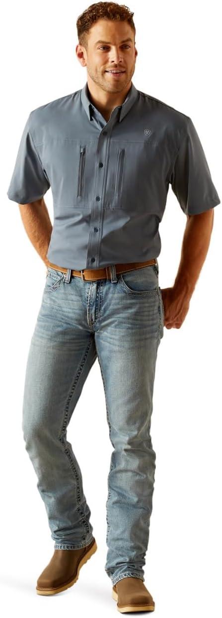 Ariat Mens Taupe Grey Venttek Short Sleeve Shirt(Newsboy Blue)