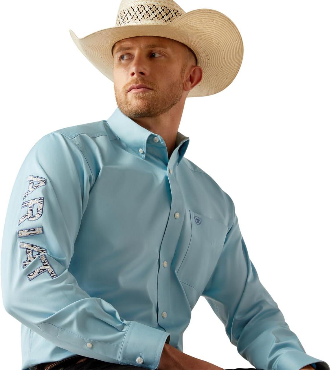 Ariat Men’s Team Logo Twill Classic Fit Shirt(Light Blue/Blue)
