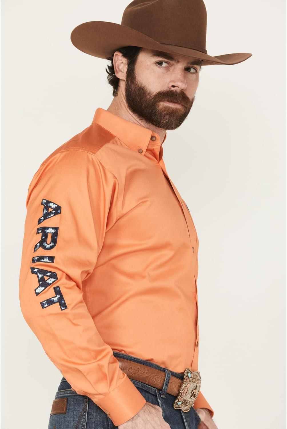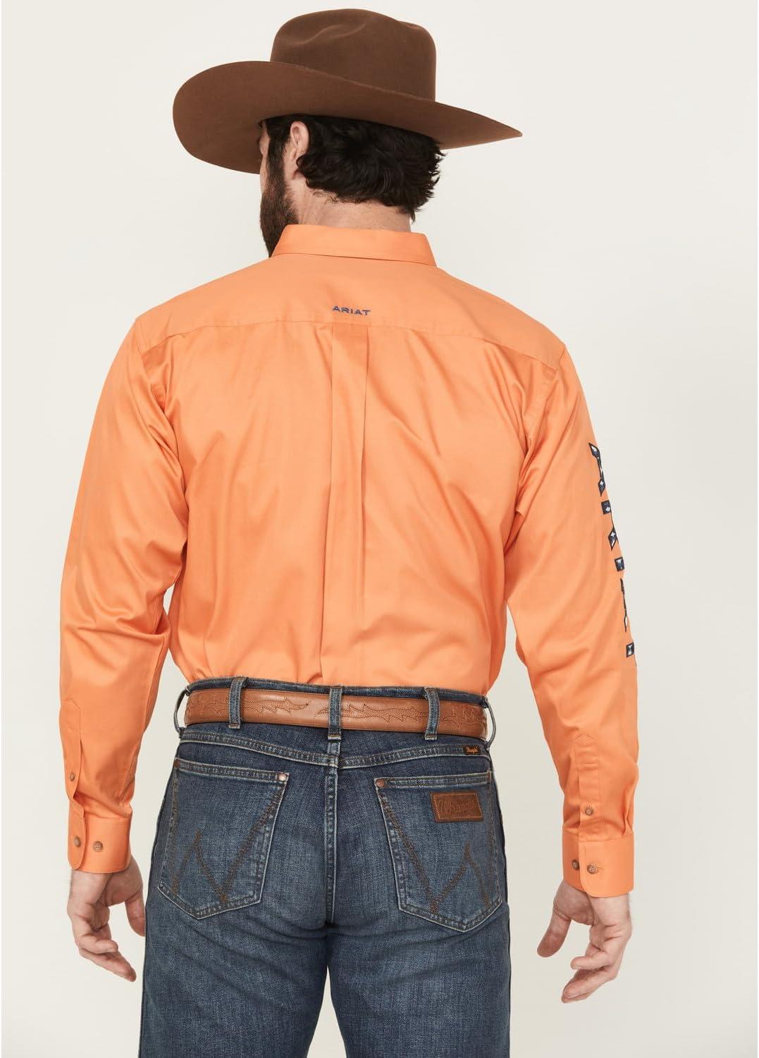 Ariat Men’s Team Logo Twill Classic Fit Shirt(Orange/Navy)