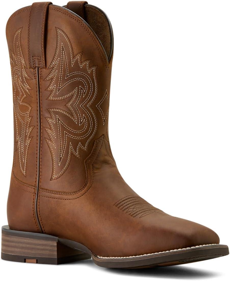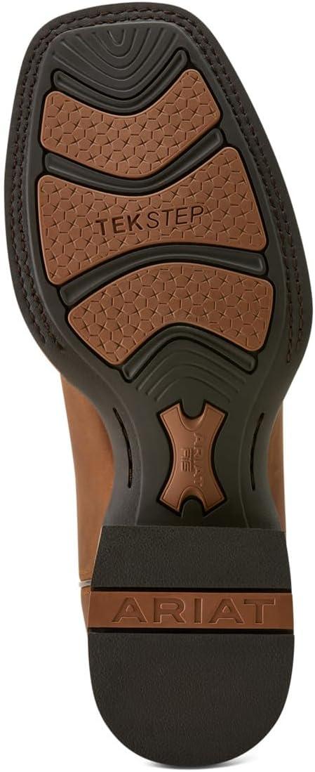 The Ariat Men’s Western Big Rig Wide Square Toe Cowboy Boot is a spin on Ariat's best-selling Big Rig Work Boot, giving you the generous support workers love in a more traditional Western silhouette. Available in wide widths and extended sizes, it's built bigger from the ground up to give you the right foundation. A roomy opening and Ariat's U-Turn technology make it easier to pull it on and off. Designed with a Duratread sole that is durable enough for maximum wear resistance and a Pro Performance insole for shock absorption. TekStep with X50 midsole provides toe-to-heel cushion for comfort. Built with ATS technology that provides ergonomic support on uneven terrain. The men’s cowboy boots are crafted from full-grain leather and a double-stitch welt that combines rugged style with reliability. The 11” shaft height, 1.5” Horseman heel height, and wide square toe create a functional fit for work and everyday wear. The shaft features a six-row stitch pattern that sets it apart. Conquer your day with the unmatched comfort and rugged durability of these square-toe boots for men.