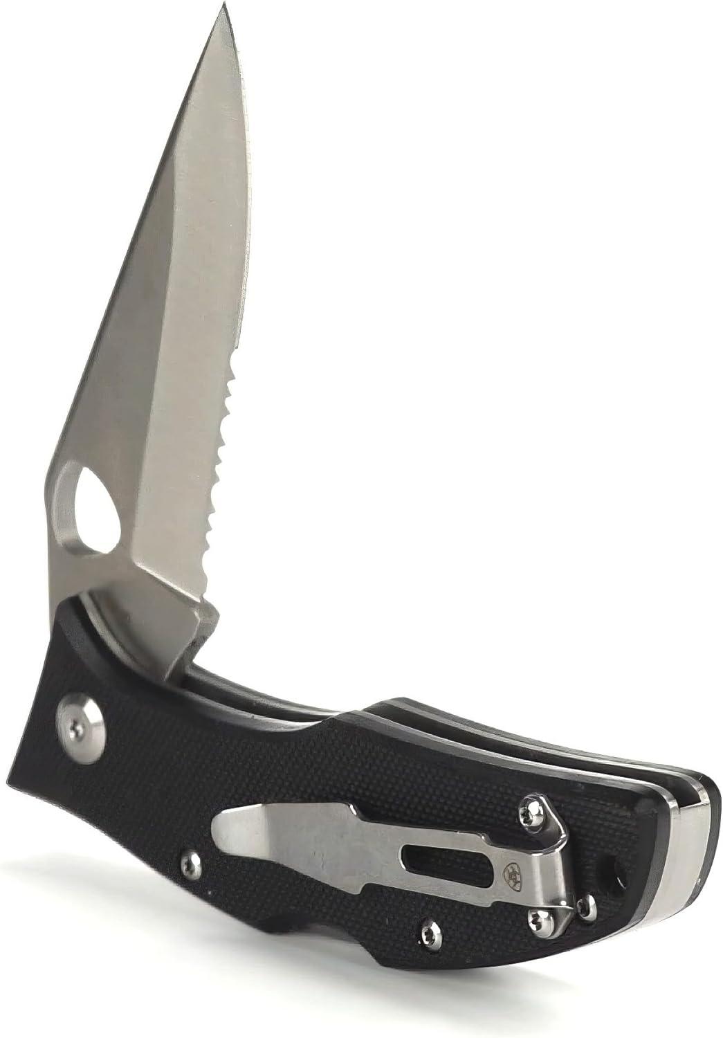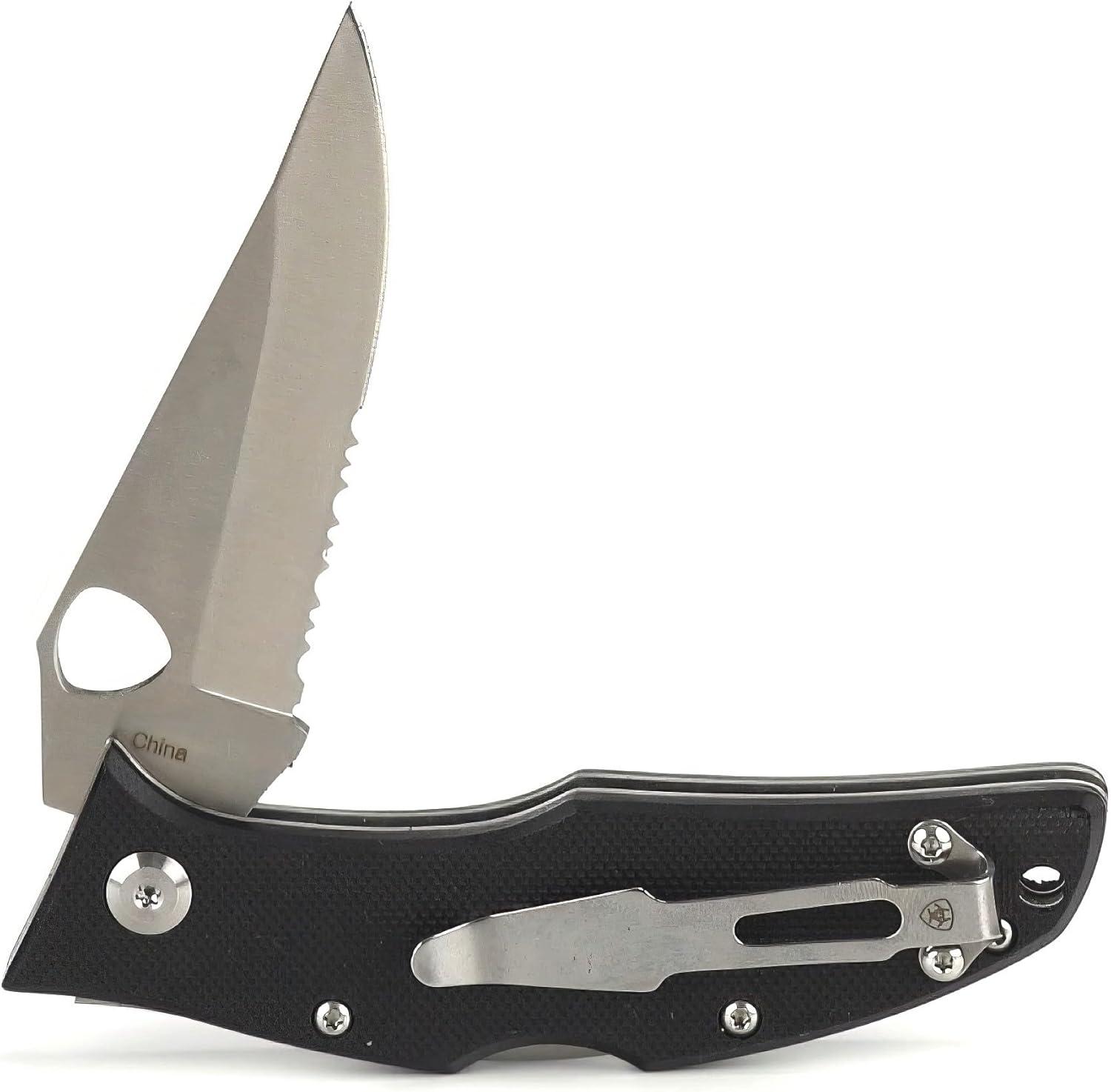 Hybrid Blade Design: 3” 8CrMoV stainless steel blade with smooth front edge and serrated rear for versatile cutting performance.