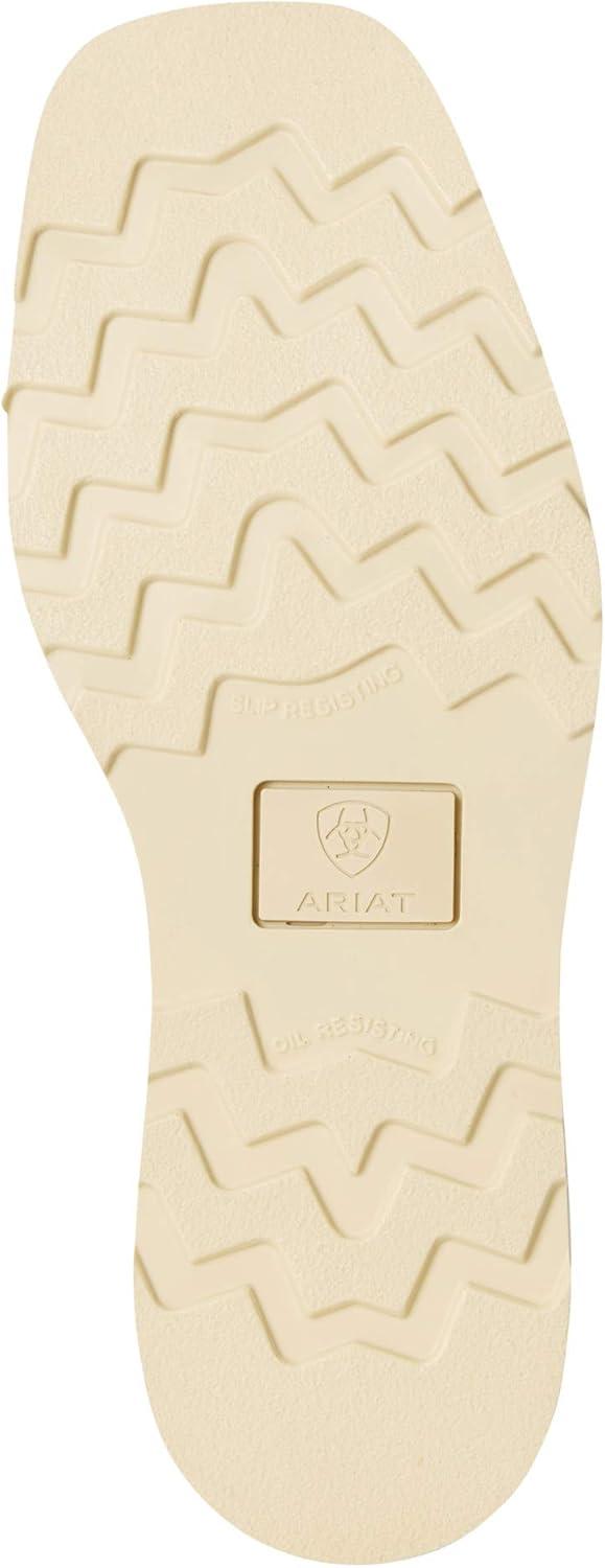 The Ariat Rambler Recon Western Boot is a brilliant choice for those working outdoors at a ranch or in the barn. Slip- and oil-resistant, the durable flat outsole blended with the classic rugged features that finally create a fusion style footwear. For greater stability and comfort, the ATS technology provides superior support and cushioning, so your feet stay comfortable despite breaking a sweat cleaning the animal barn or tilling the land. The solid square toe construction of these leather work boots protects from direct impacts. The contrasting color sole unit dampens the impacts and bumps from below, providing optimum comfort, so you can take the day head-on no matter what the task is. Ariat is a leader in developing advanced technologies to deliver products that outperform in a variety of demanding environments. The brand partners with world-class biomechanical research groups and testing labs to improve product performance, comfort, and durability; while focusing on real-world product functionality. Ariat works with global suppliers to develop new materials that are lighter, cooler, and more durable than anything in the market. The brand field-tests all of its products to consistently raise the bar for functionality and style. Here at Ariat, we are committed to delivering performance footwear and clothing with an emphasis on technology and innovation. Today, Ariat's world-class product team builds innovative and award-winning performance products for all types of outdoor and work environments.