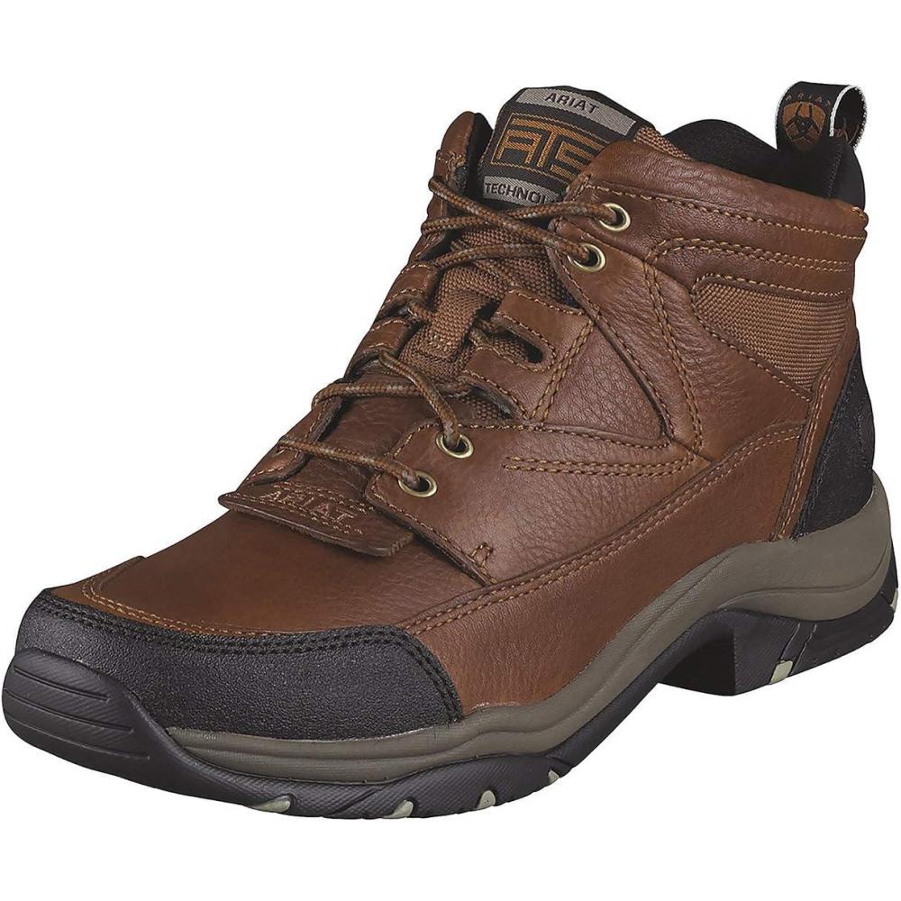 Designed to tackle tough terrains, these Terrain men's hiking boots from Ariat are the perfect choice for trekkers, adventurers and anyone who loves the great outdoors. Built for the trail, these hiking and endurance boots for men don't sacrifice comfort or support, even in shifting weather conditions. The highly effective ATS technology is incorporated to offer stability and all-day comfort. Showcasing a tough, oiled, full-grain leather, these all-weather shoes for men have an undeniable quality and are built to last. The moisture-wicking lining promotes optimum foot hygiene while the EVA midsole offers maximum shock-absorption and cushioning. They offer superior grip without the lug mess of other boots and easily wipe clean. Whether it’s ice, mud, or puddles, you can be sure of the comfort and durability these men's hiking boots won't fade. No matter what you need, there’s an Ariat product made for you. Ariat works with global suppliers to develop new material that is lighter, cooler and more durable than anything else in the market. Every product, from hiking and work boots to western casual wear and English riding gear, gets field tested with people like you, enabling us to consistently raise the bar for functionality and style. Ariat is committed to building a different breed of company, one that reflects our core values as a team and those of our consumers. Our company values have shaped our success since 1993 — a commitment to innovation, quality, integrity, teamwork and respect.